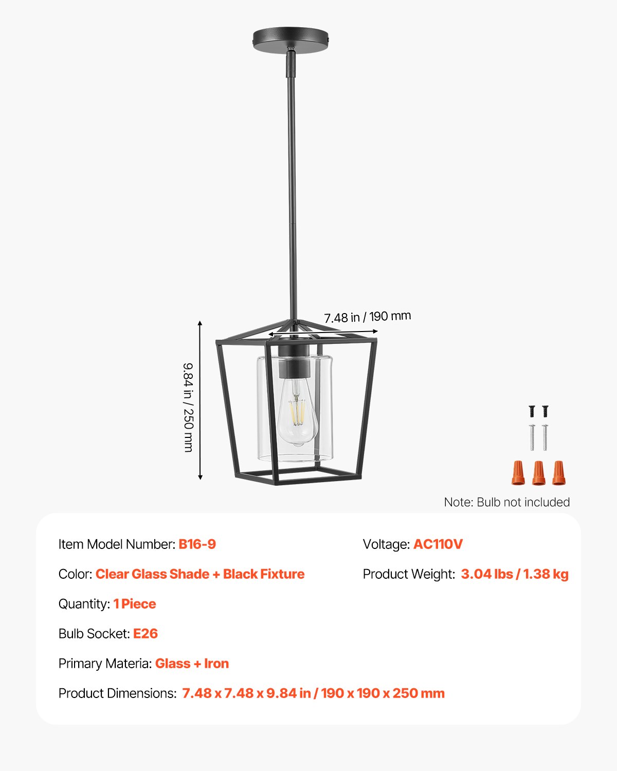Black Pendant Light Iron Cage Metal Pendant Lighting With Glass Shade