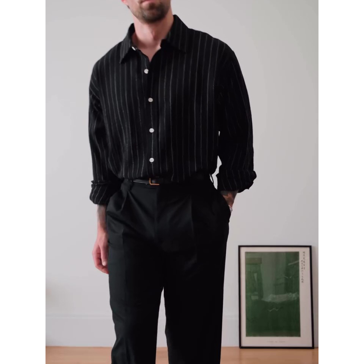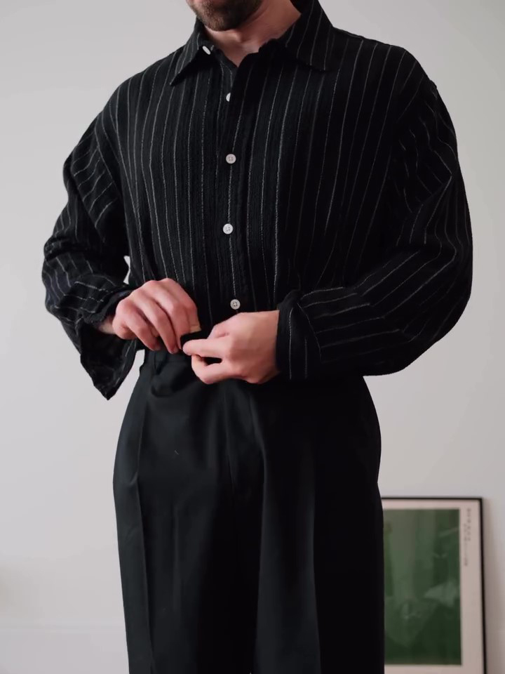 Black Pinstriped Button-Down Shirt