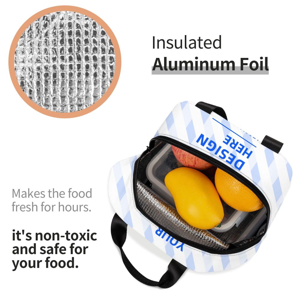 Material Description: The lunch bag is made of high density Oxford cloth and thick aluminum foil. It will keep your food cool or warm for about 4 hours. It keeps your food fresh and delicious. It will be better and fresher to freeze in an ice pack.