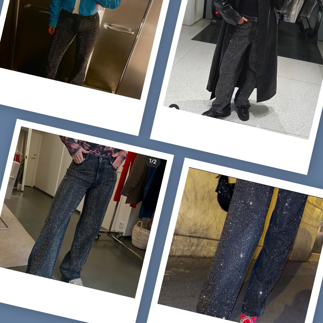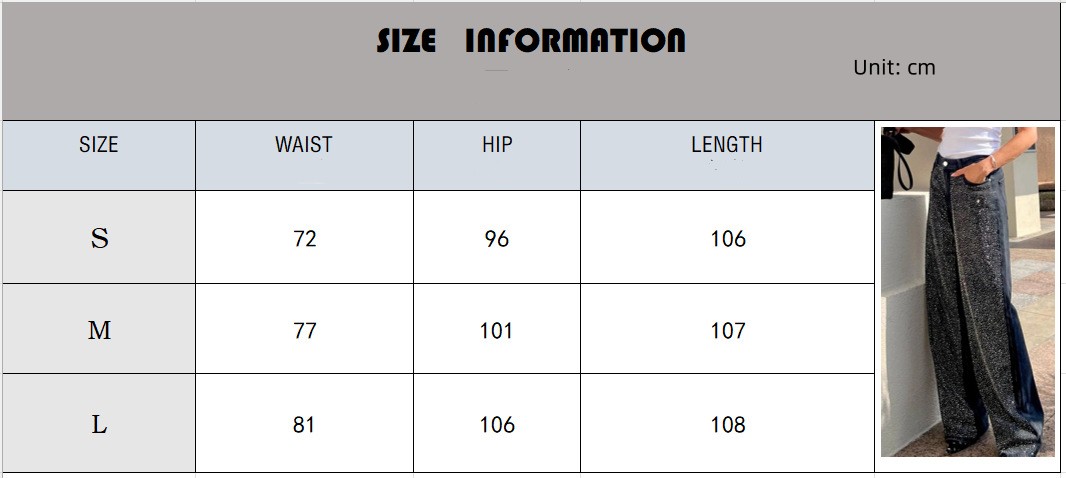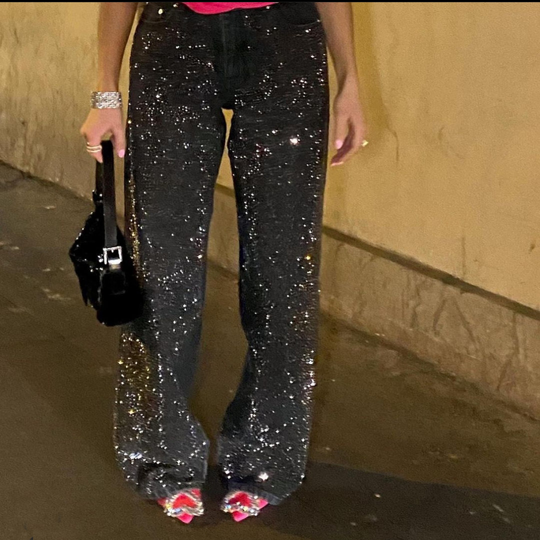 Black Rhinestone Loose Women's Long Casual Jeans