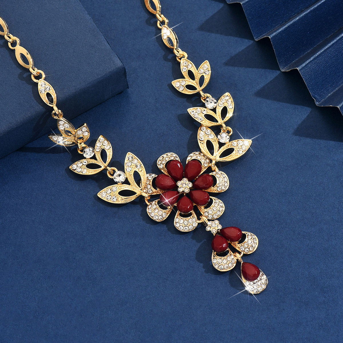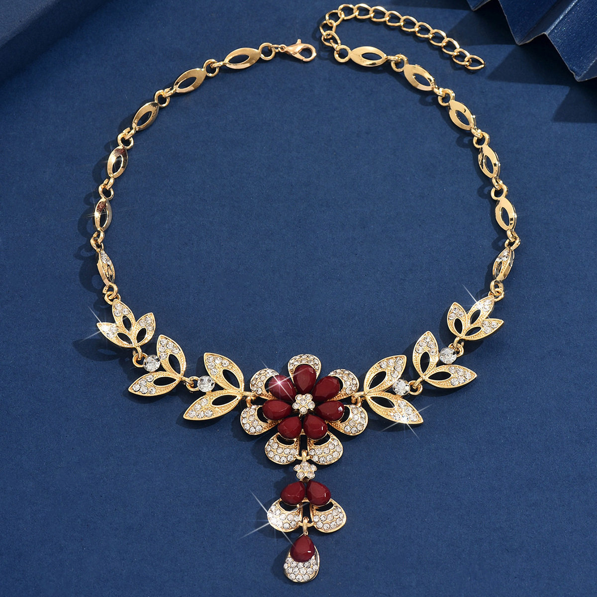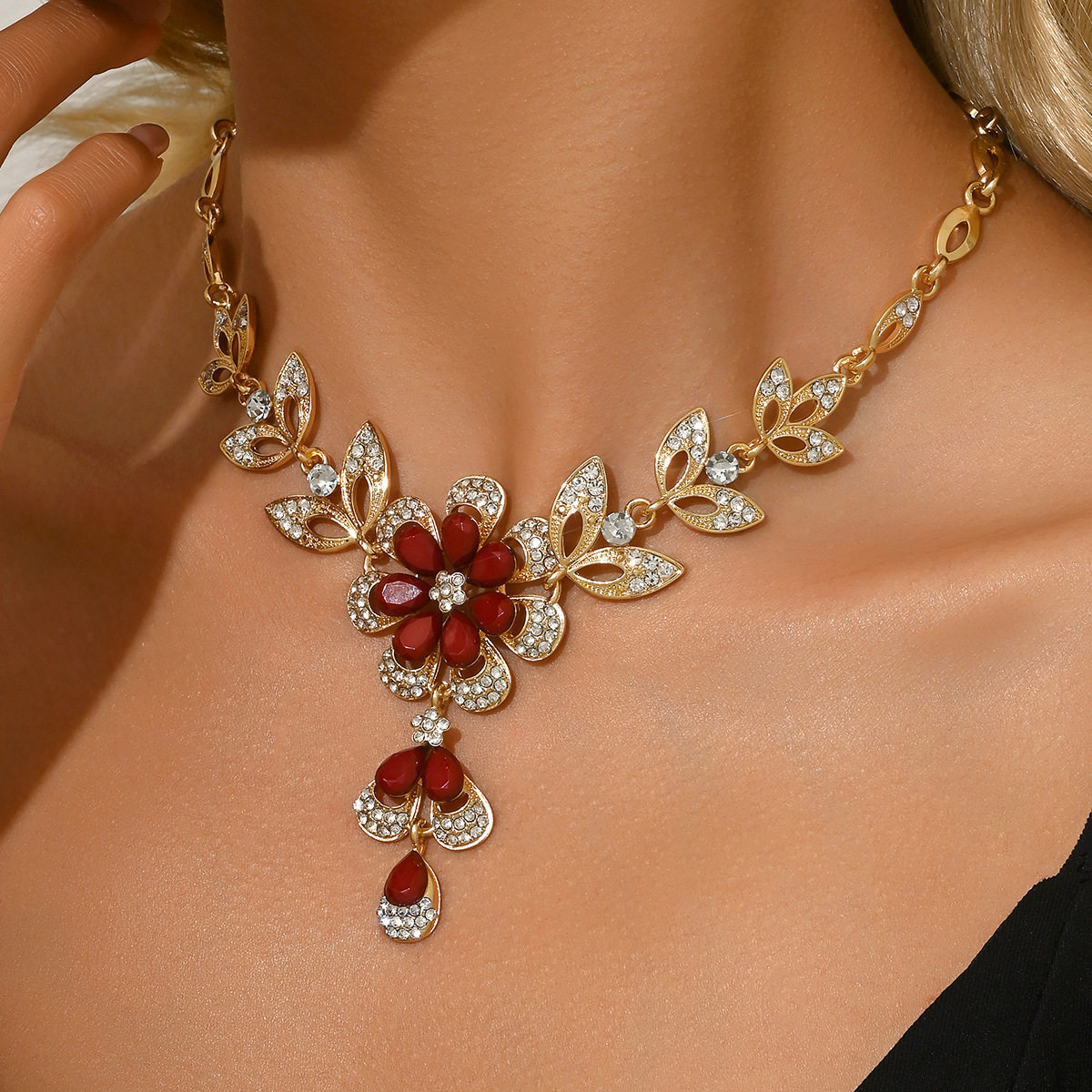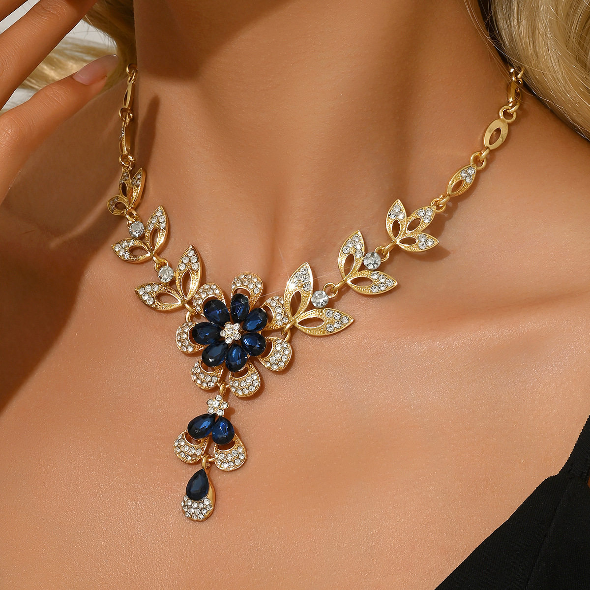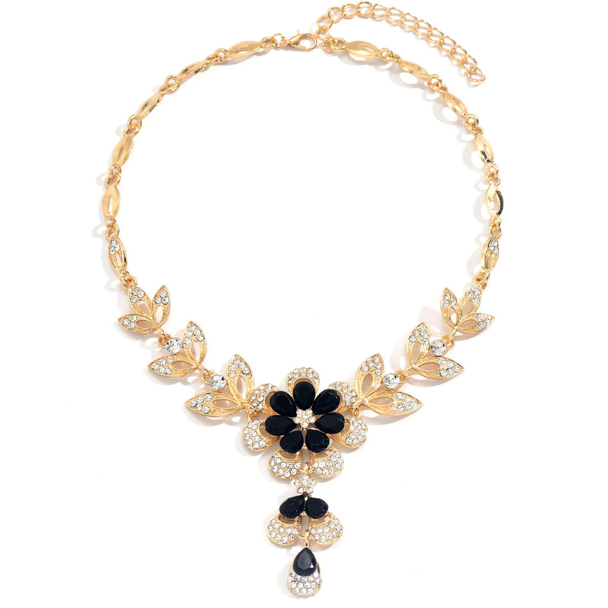 Black Rhinestone Necklace With Hollow-out Zinc Alloy Flowers