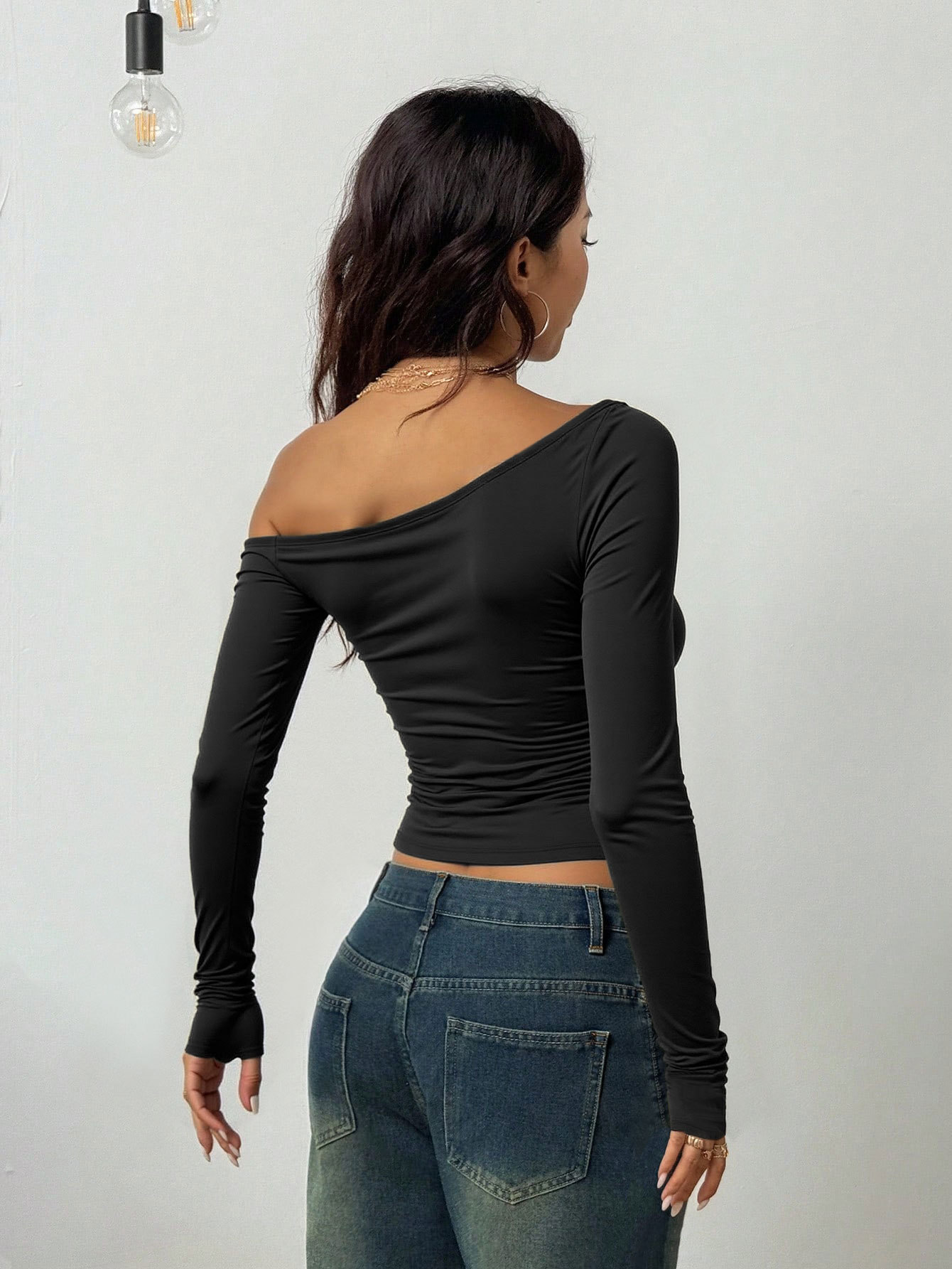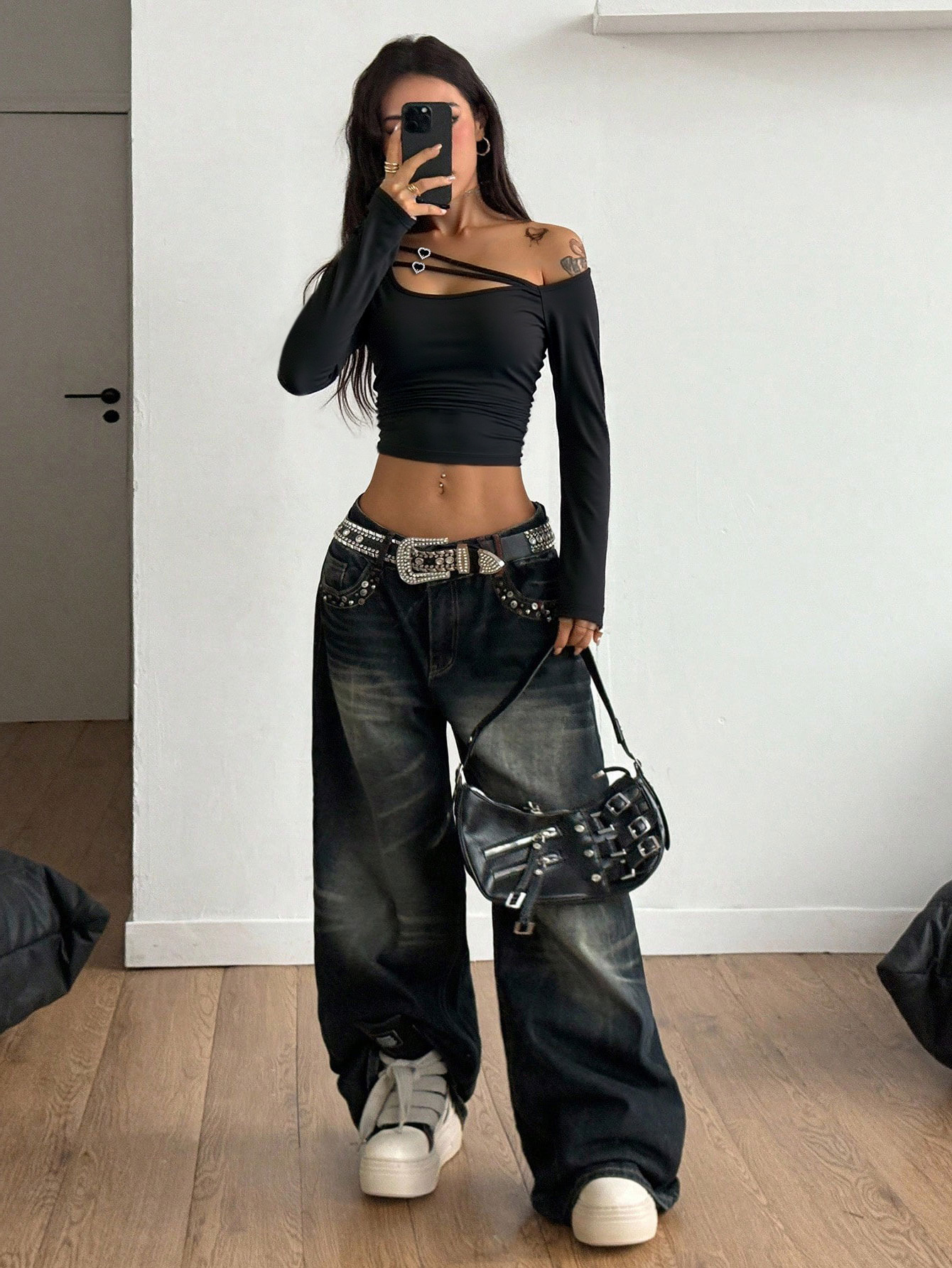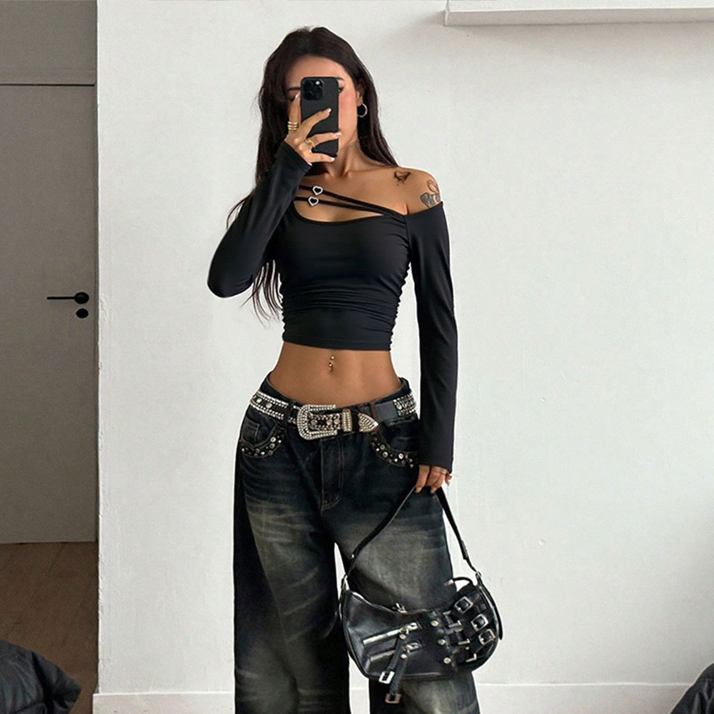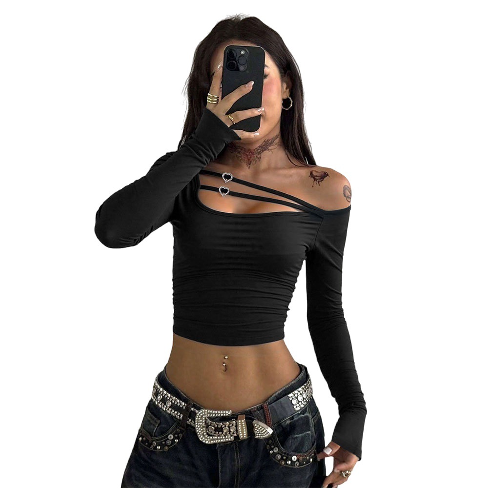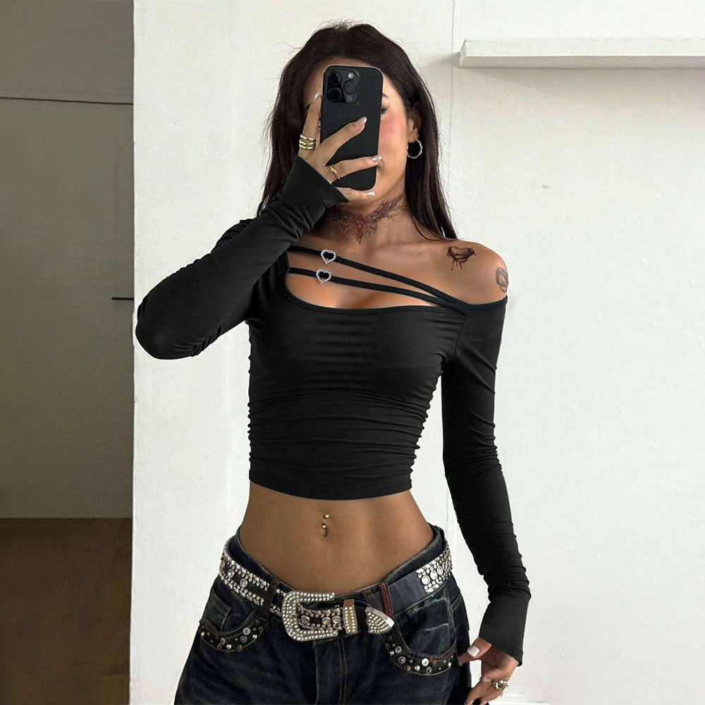 Black Sexy Off-shoulder Halter Hot Girl Hollow-out Cross Strap Design Niche Crop Top
