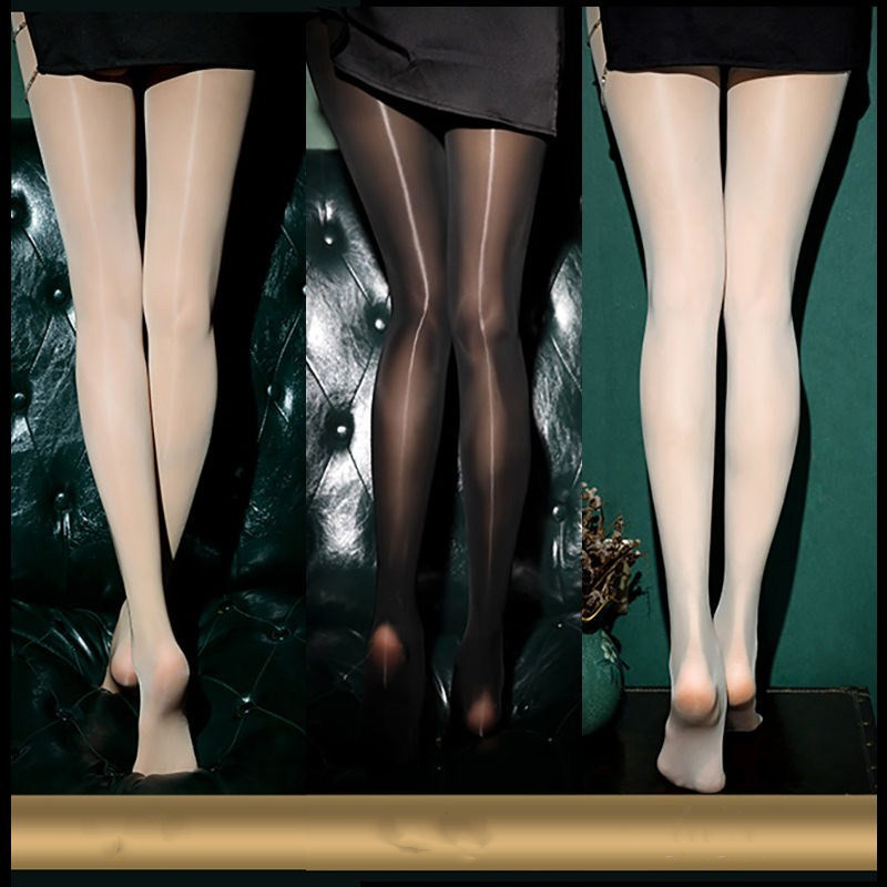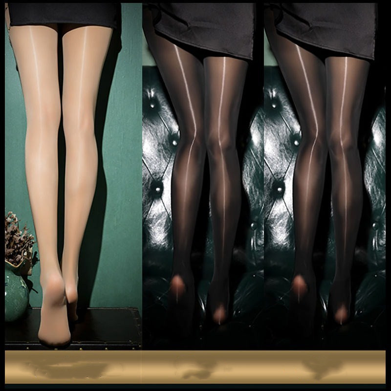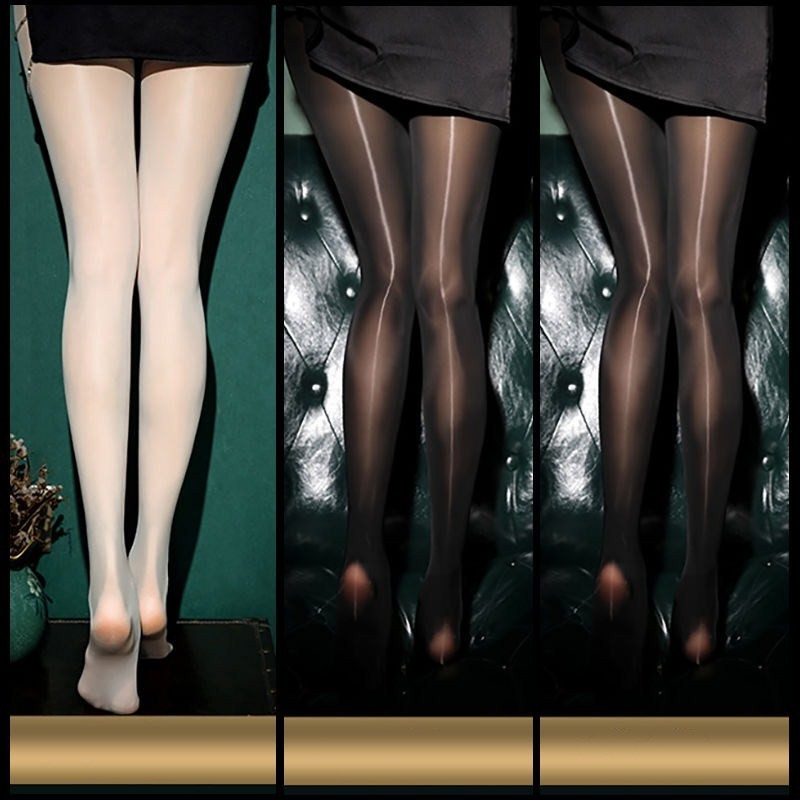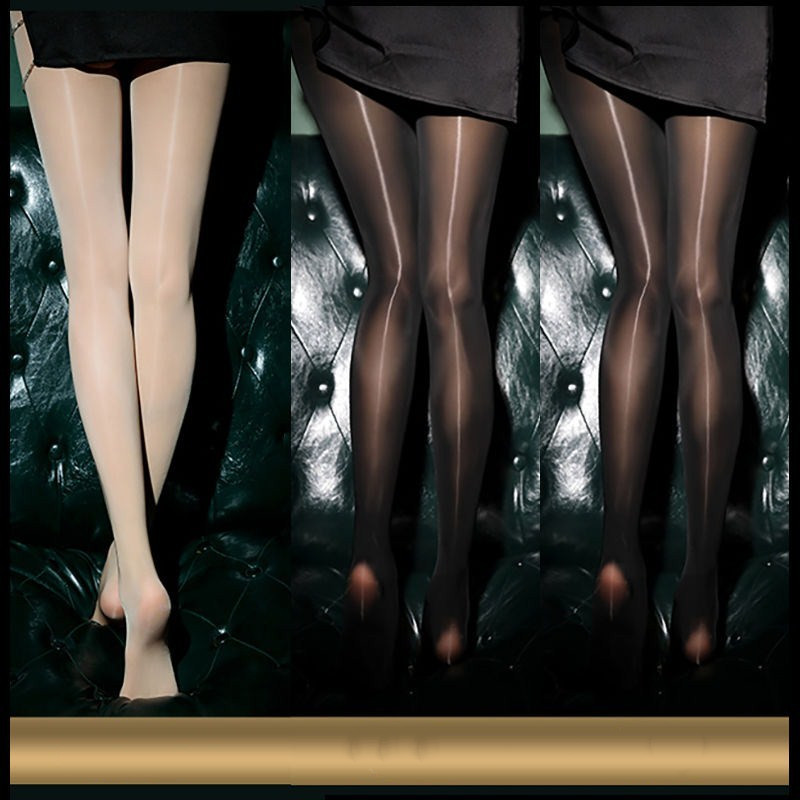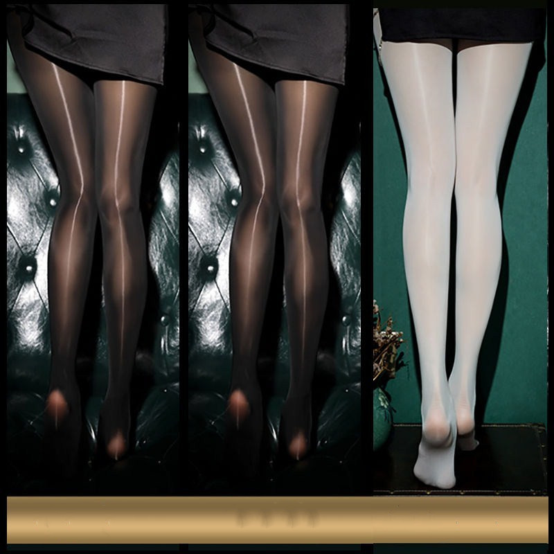 Black Sexy Oily Stockings Women's Summer Ultra-thin Pearl Shiny Gold Crotch Bottoming Panty Socks Net Red Tide