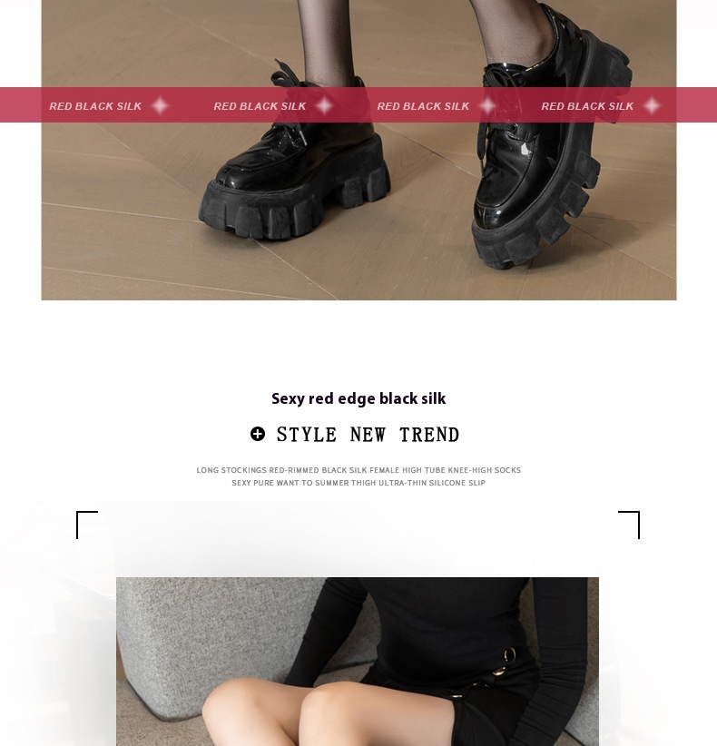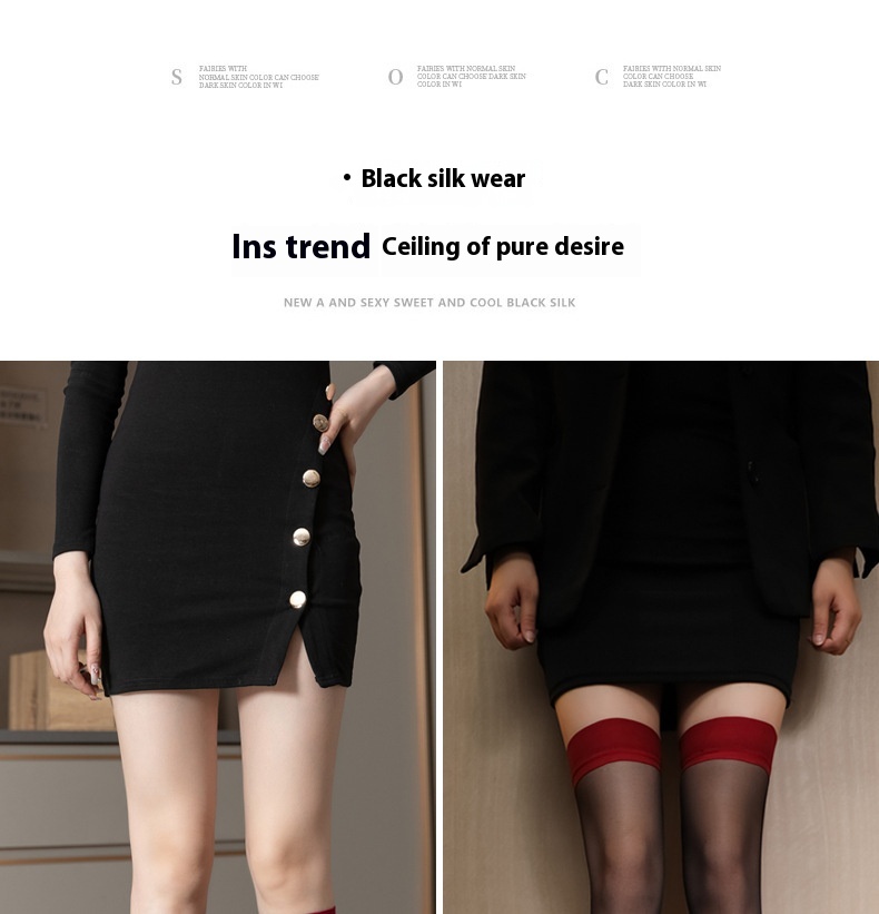 Black Silk Stockings Anti-snagging Durable Thin Red Edge Silicone Anti-snagging