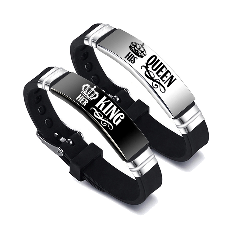 Black Silver Her King His Queen Couple Bracelets Valentines Day Gift