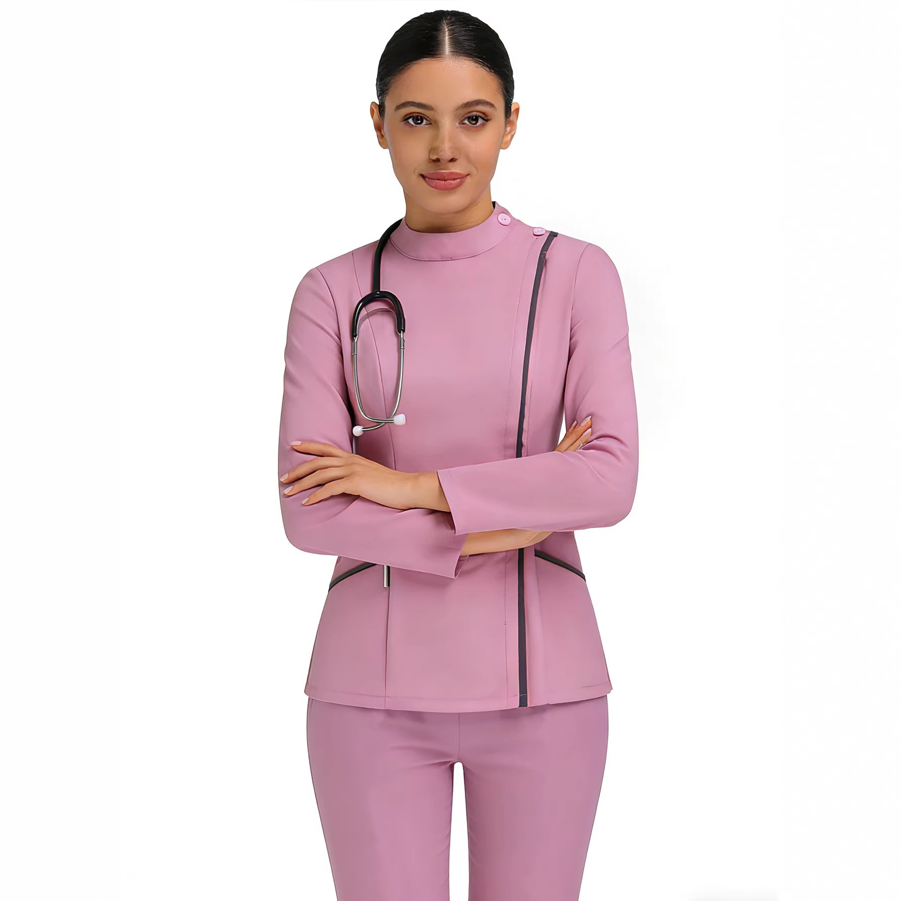 Black Small Stand-up Collar Long-sleeve Suit