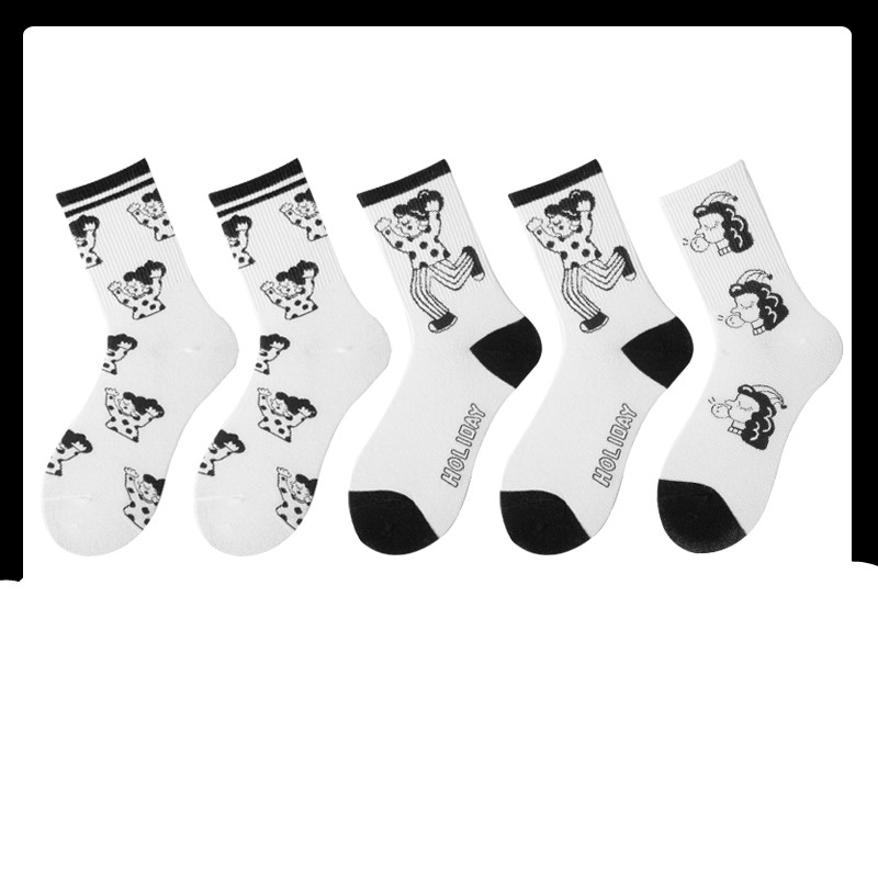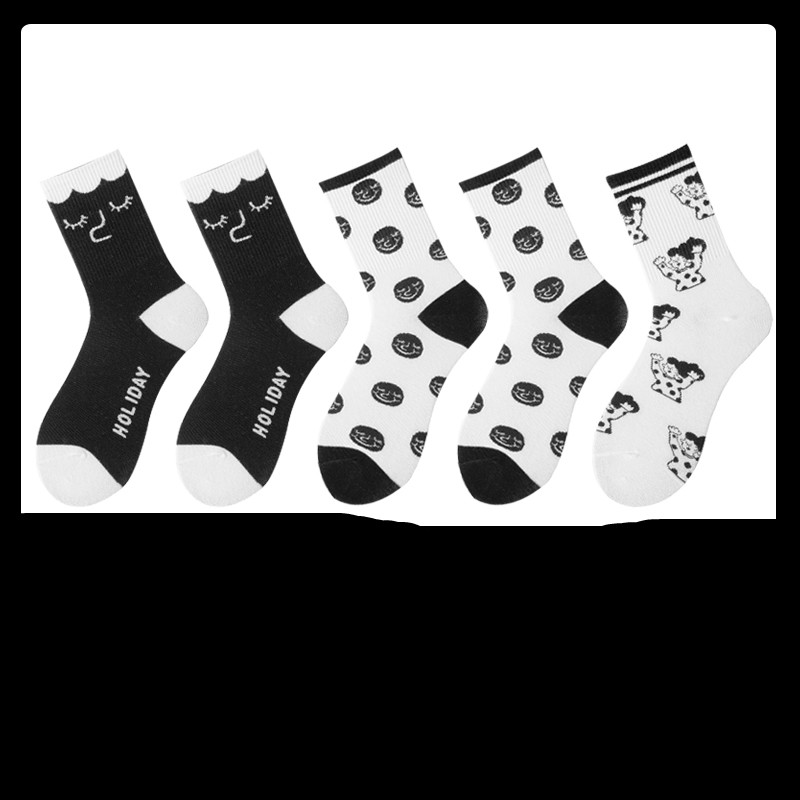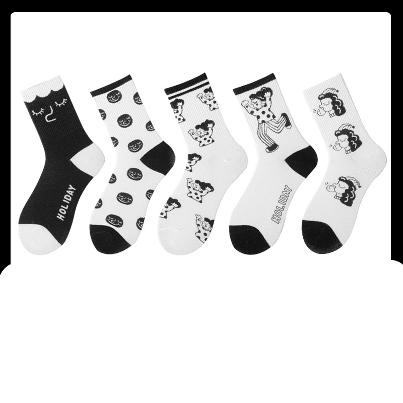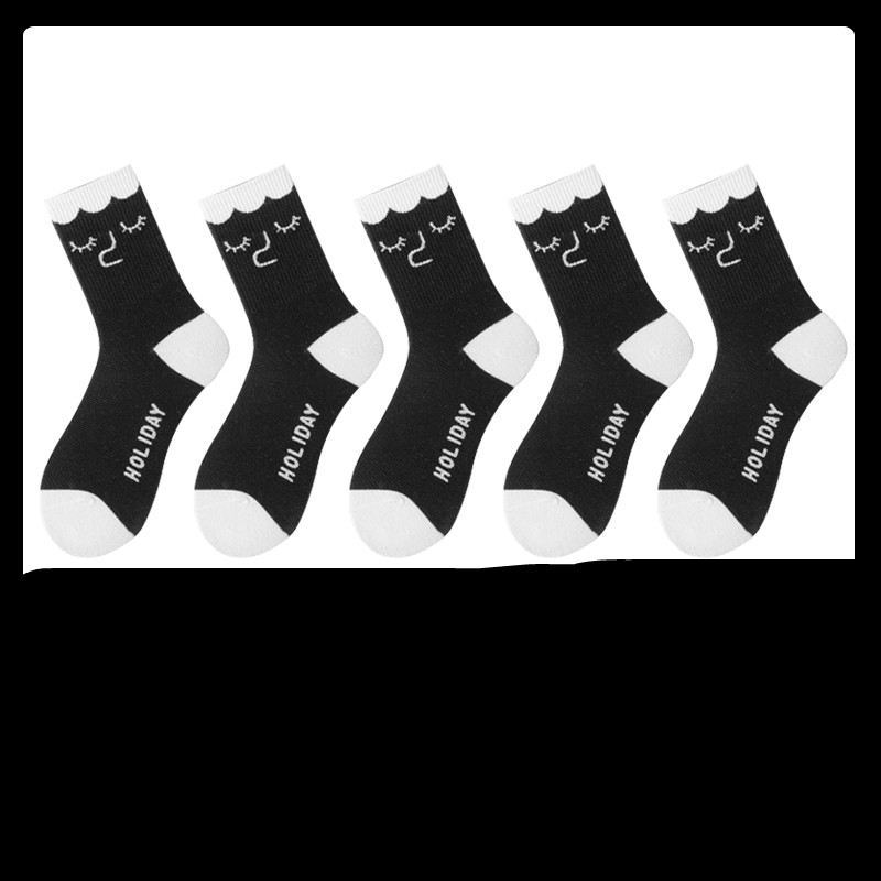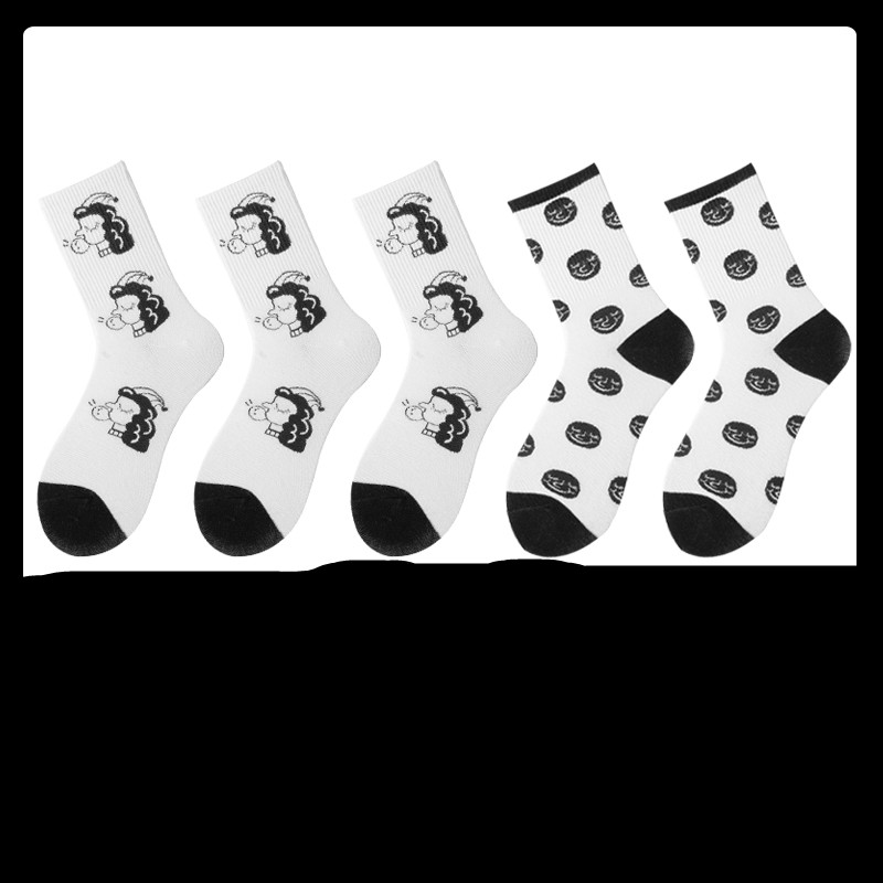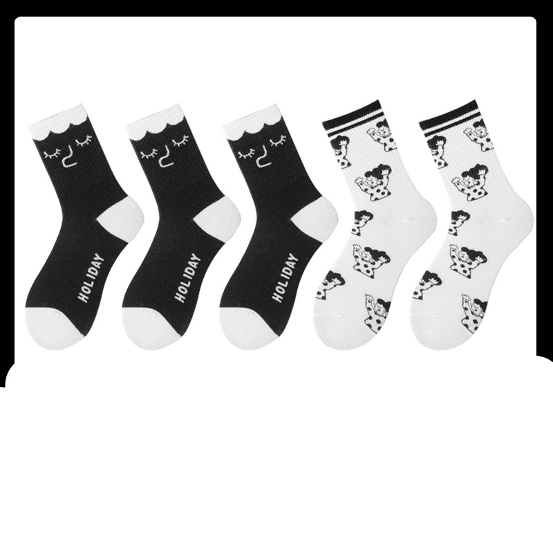 D: 3 pairs of funny black + 2 pairs of multiple girls