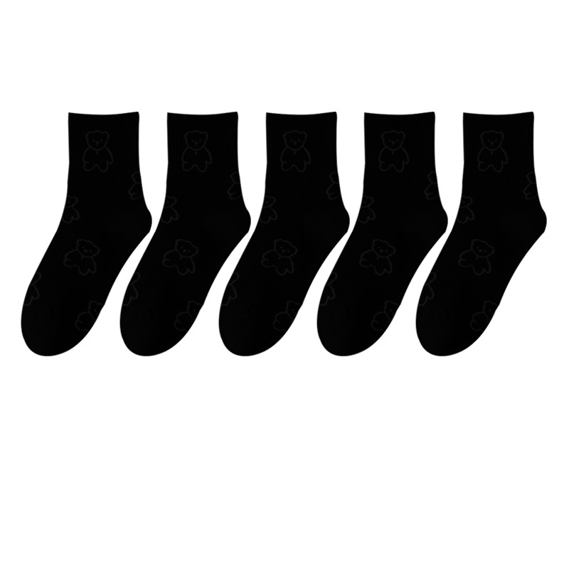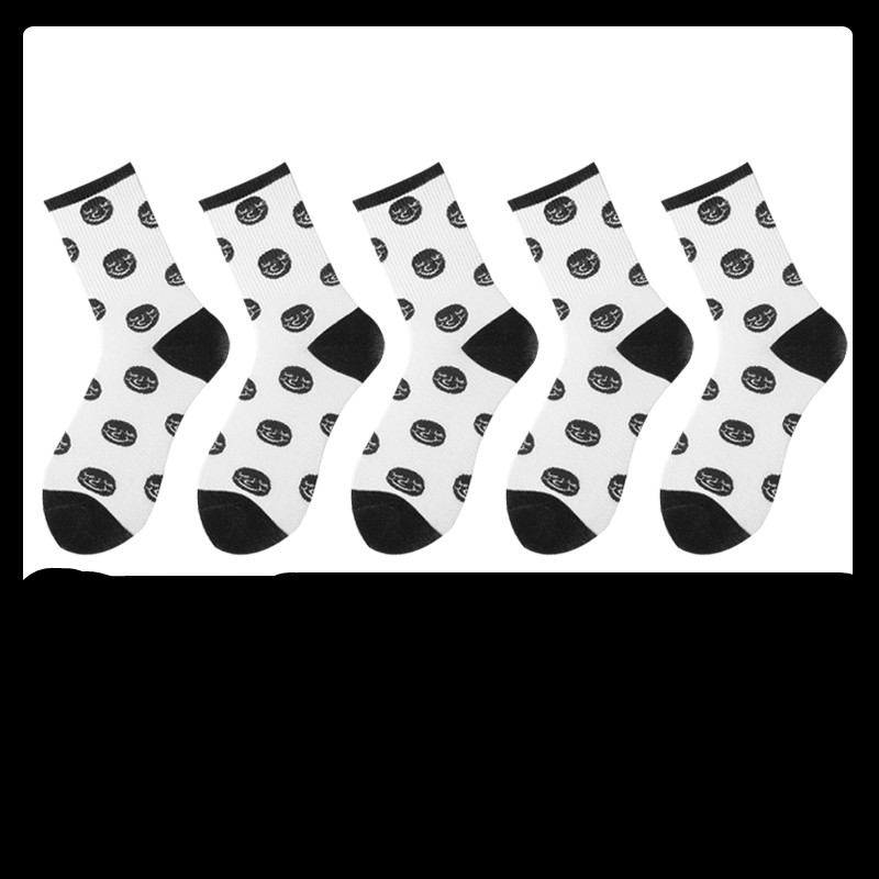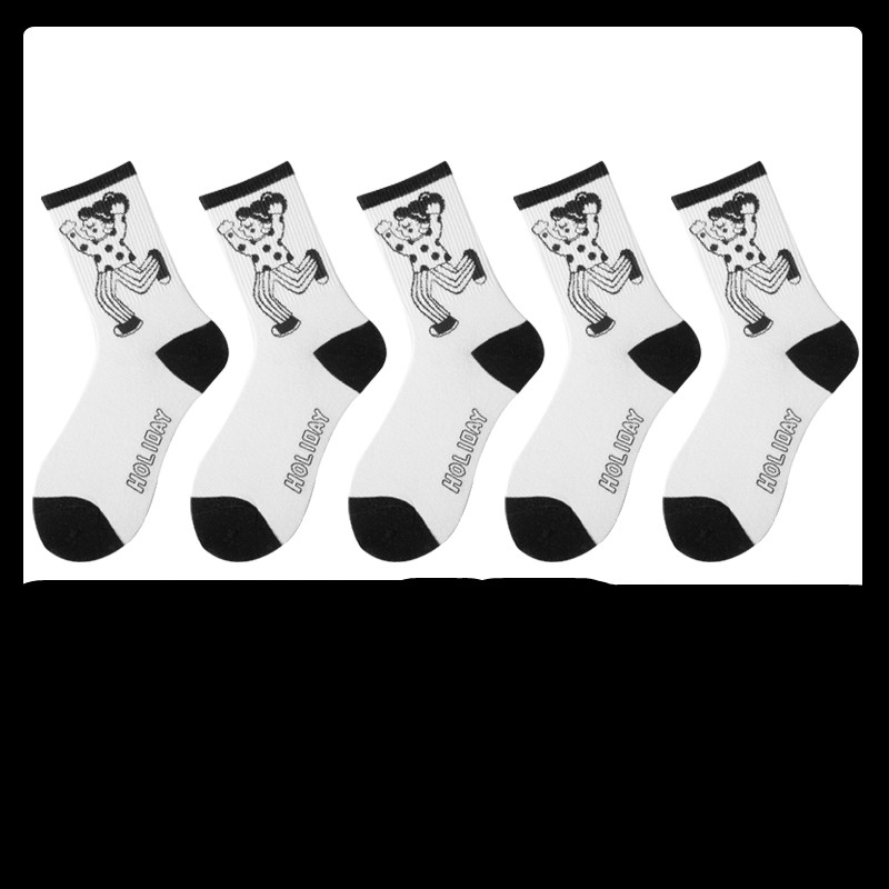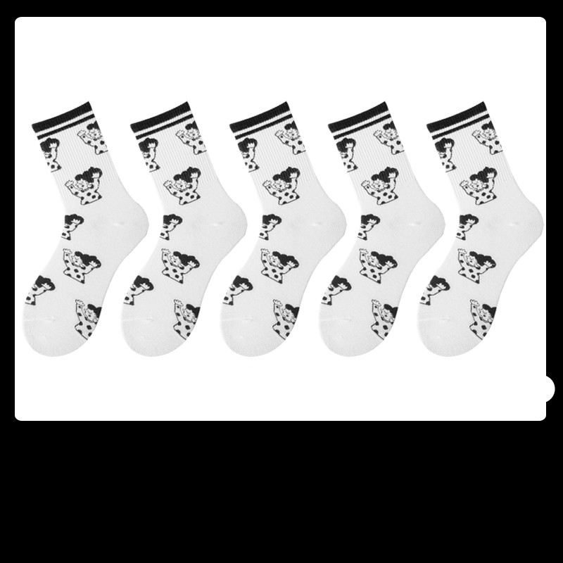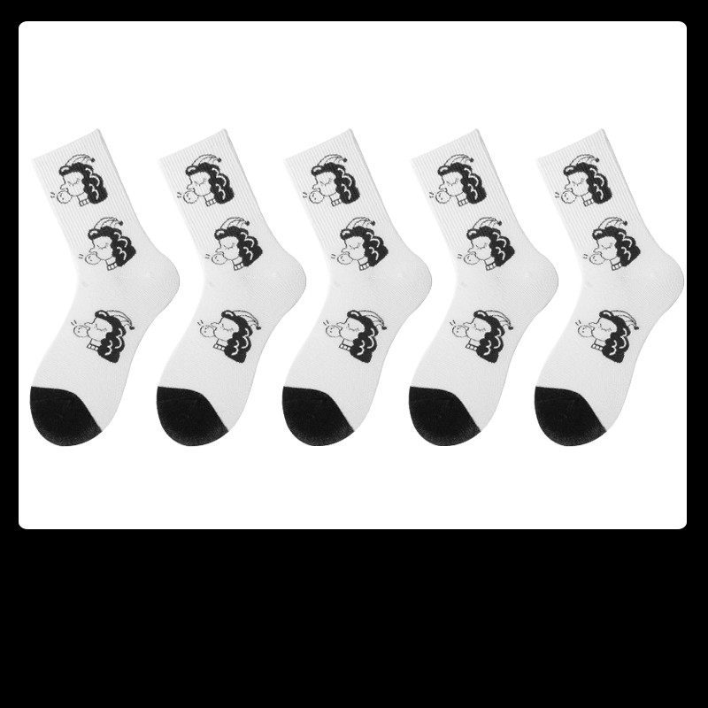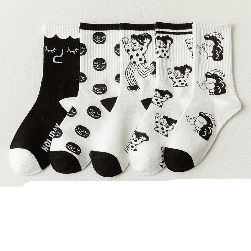 D: 3 pairs of funny black + 2 pairs of multiple girls