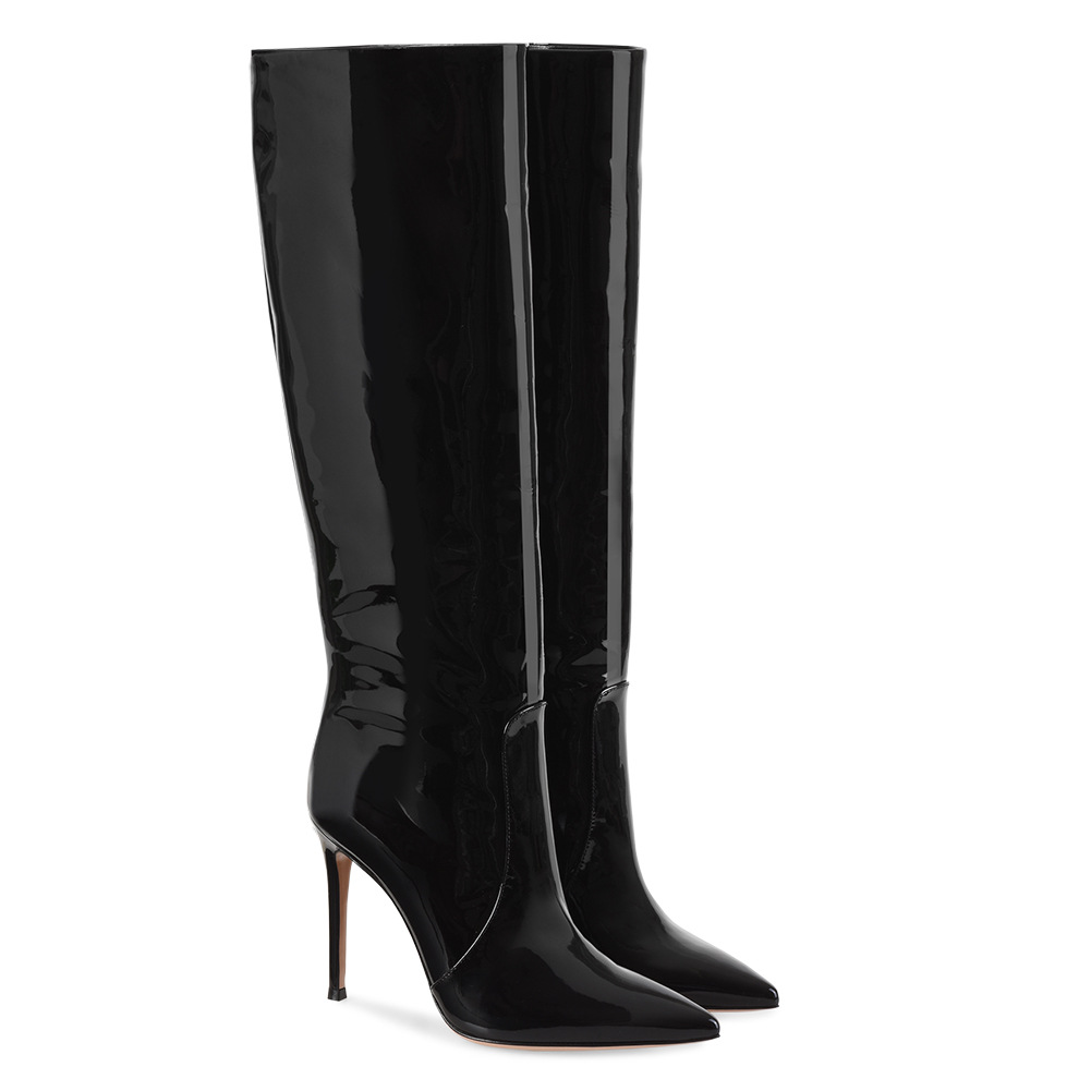 Black Stiletto Point-toe Knee-length Boots