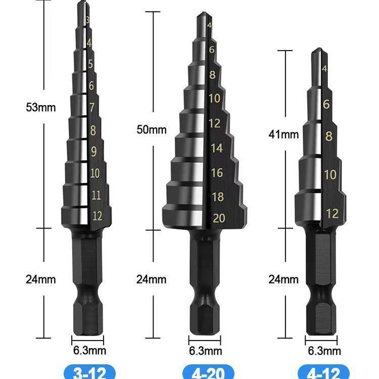 Ideal for thin metals, steel, aluminum, copper, brass, fiberglass, PVC, etc., making these step drills available for many pipe, electrical and automotive tasks.
