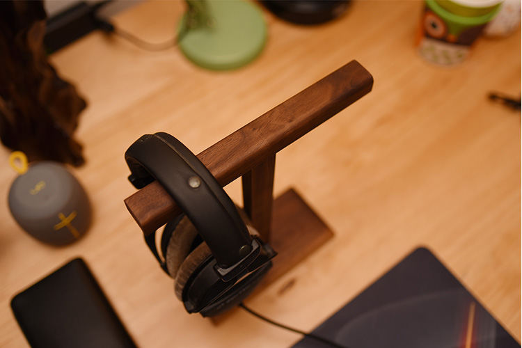 Color classification: black walnut headphone hanger, walnut headphone hanger