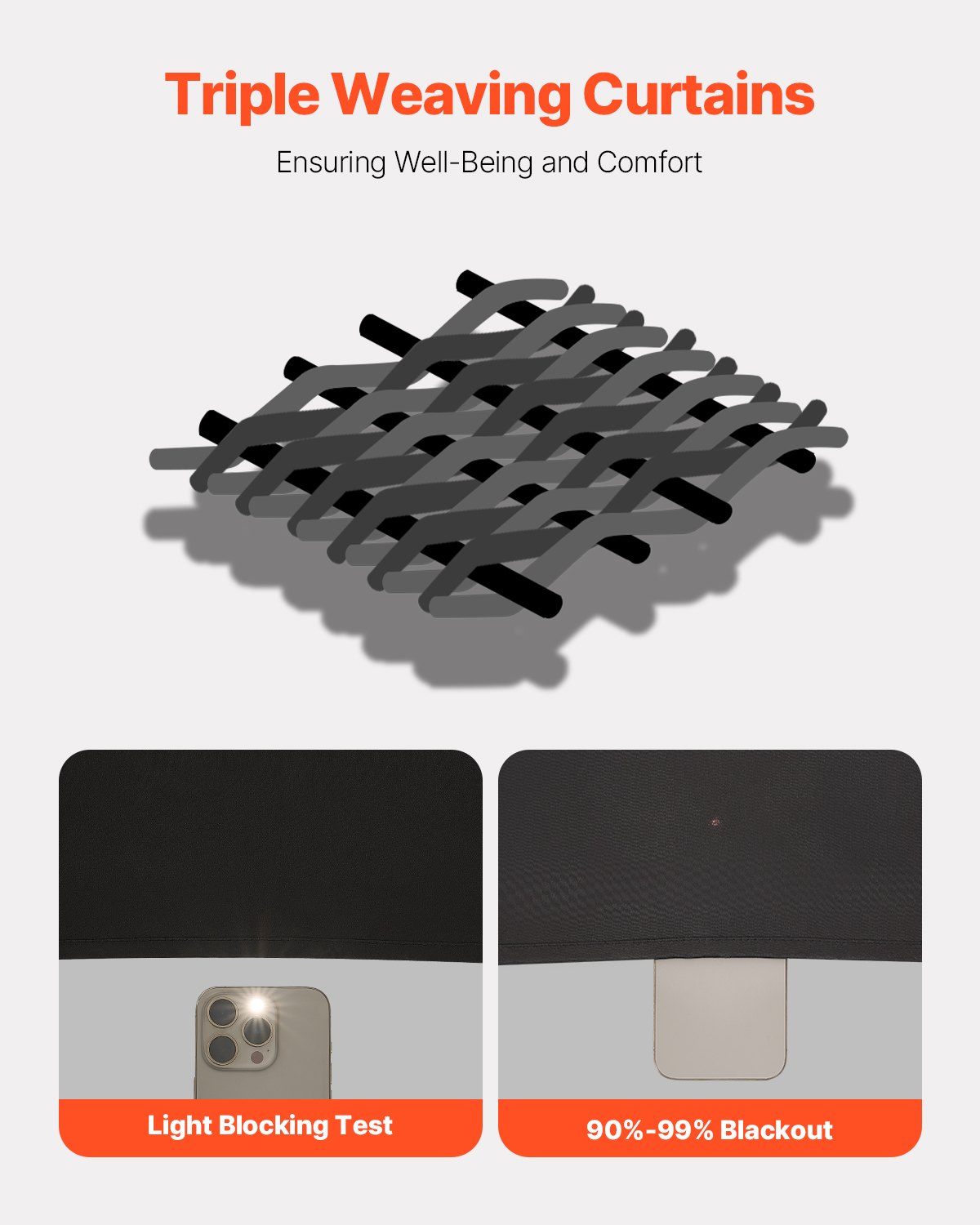 Triple-Weave Fabric Technology: Designed with energy-efficient triple-weave construction, these blackout curtains for bedroom insulate against summer heat and winter cold, helping to balance room temperature and reduce energy costs