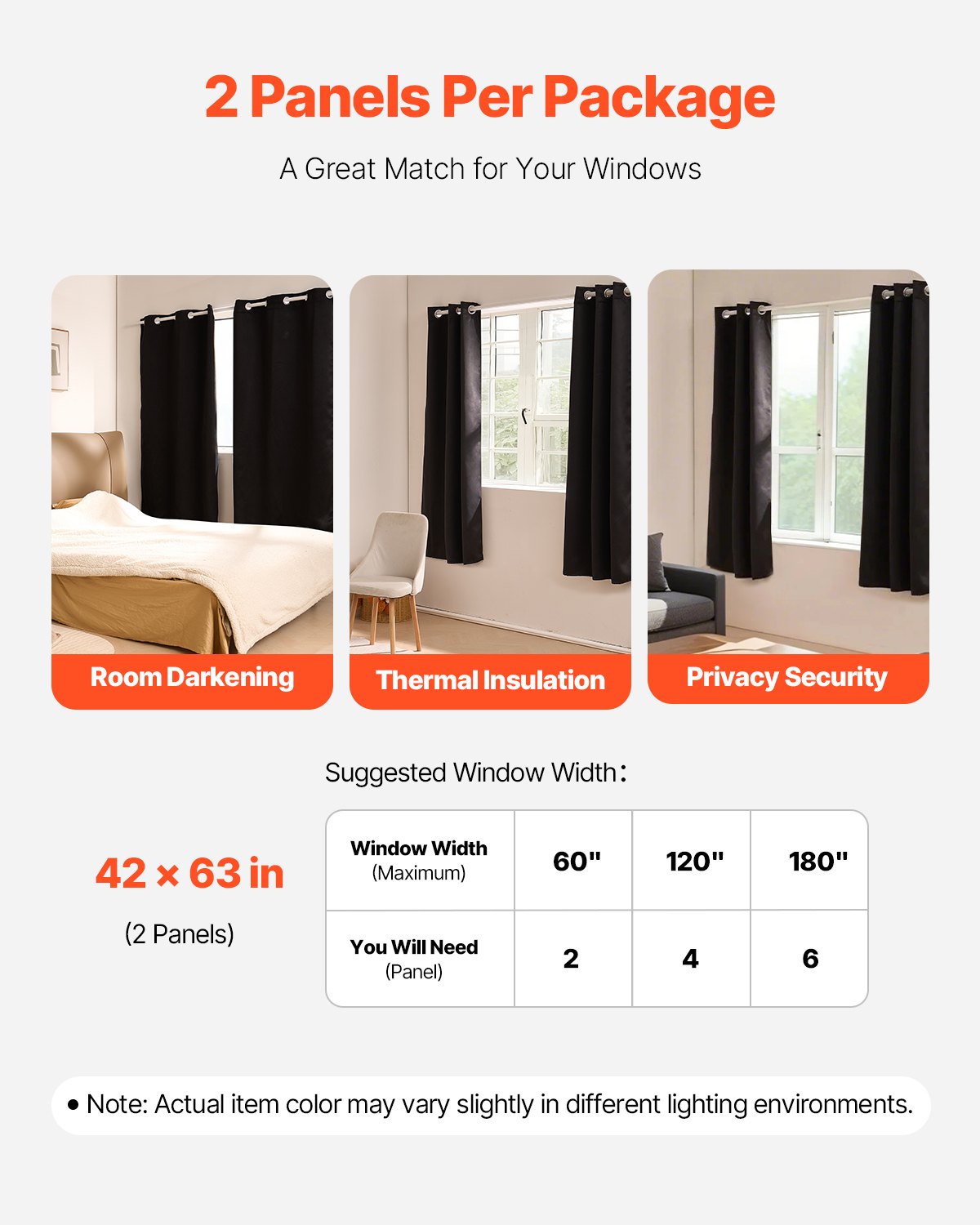 Practical Set & Size: These bedroom curtains come in a 2-panel pack, each measuring 42 x 63 inches, fitting standard window sizes. Available in various styles to complement bedrooms, living rooms, dining areas, kitchens, offices, and more