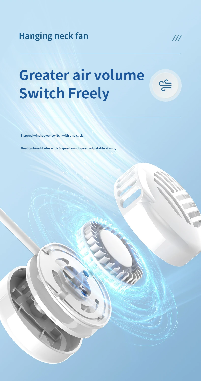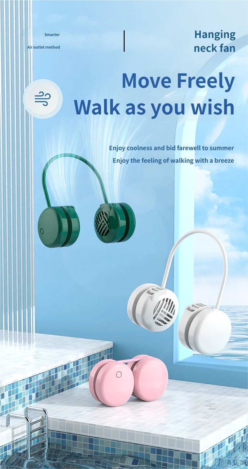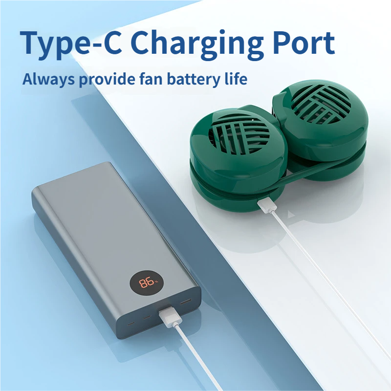 This bladeless neck fan is the ultimate portable cooling solution for daily life, outdoor activities and travel, designed with a hands-free wearable design and 3 versatile colors (white, green, pink) to match any style. Equipped with a brushless motor and 6 adjustable wind speeds, it delivers soft and powerful cooling wind with ultra-low noise below 36dB(A), ensuring a quiet and comfortable experience. Built with a 1200-2000mAh lithium battery, it offers 3-6 hours of long-lasting battery life, and the durable ABS baking paint shell provides a smooth and stylish touch. All-match design makes it a perfect daily use item and a universal gift for all occasions, lightweight at only 180g for all-day comfortable wearing.