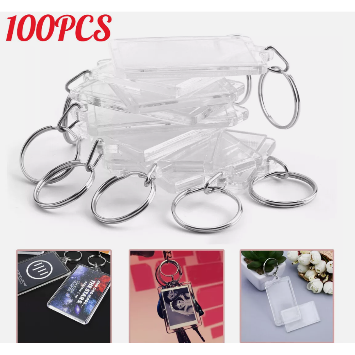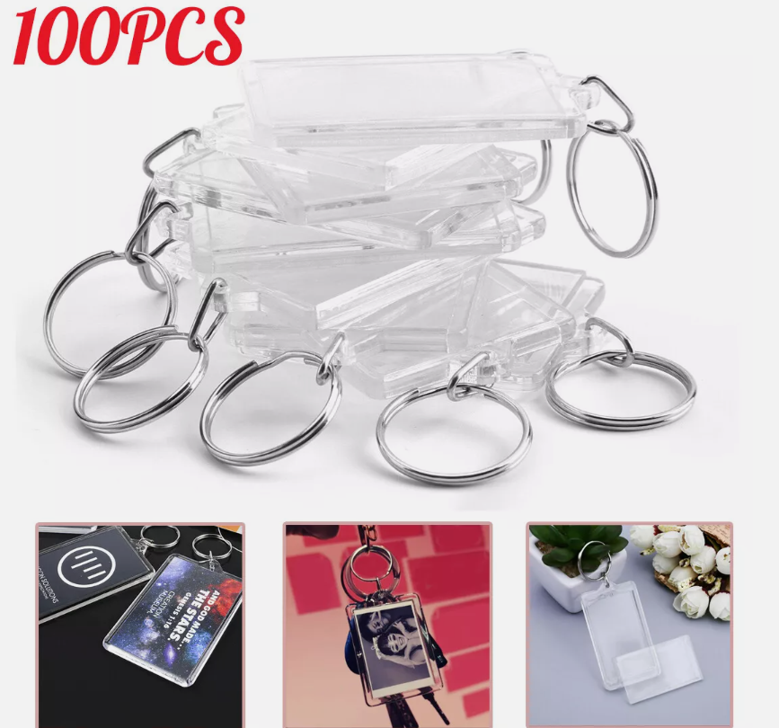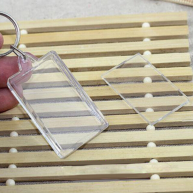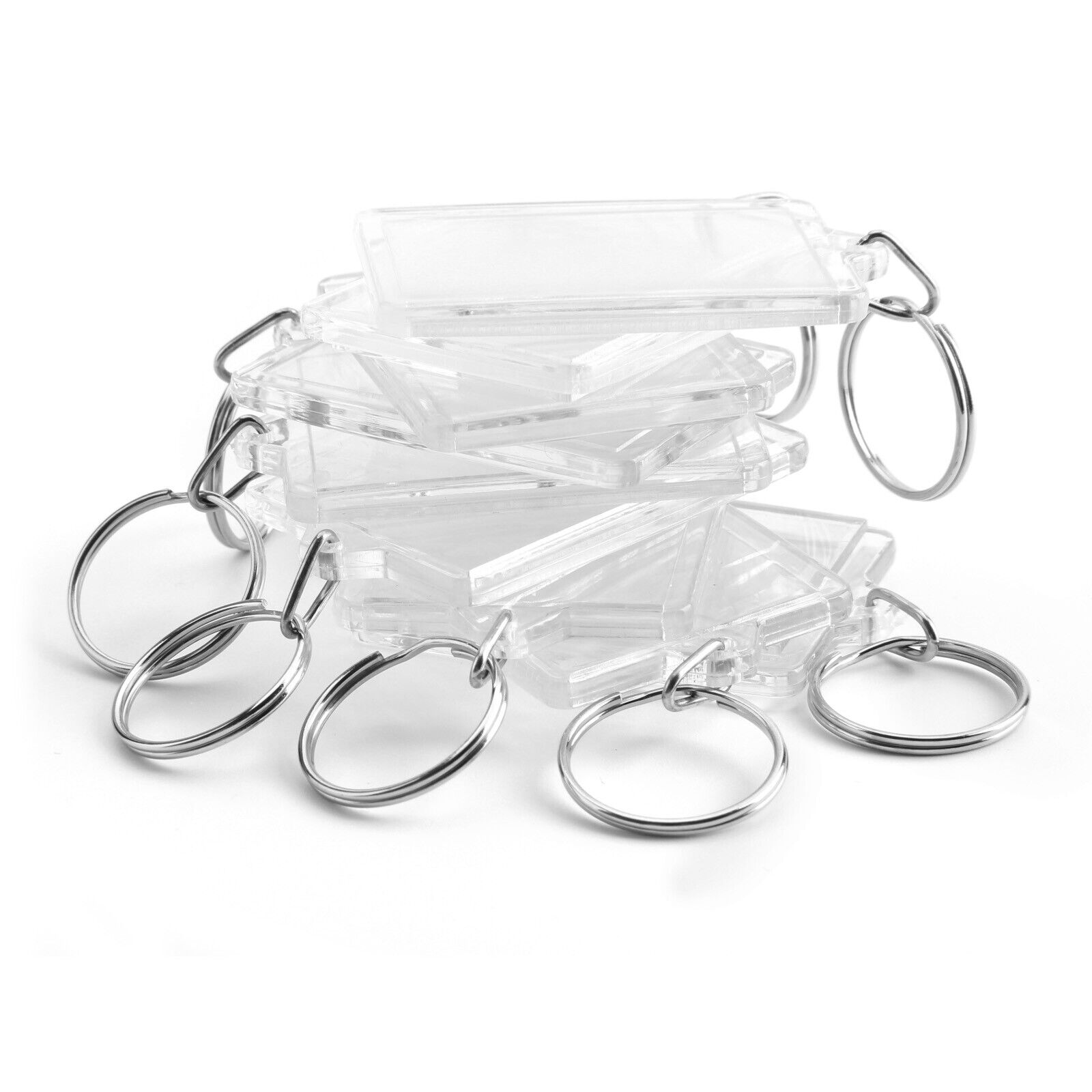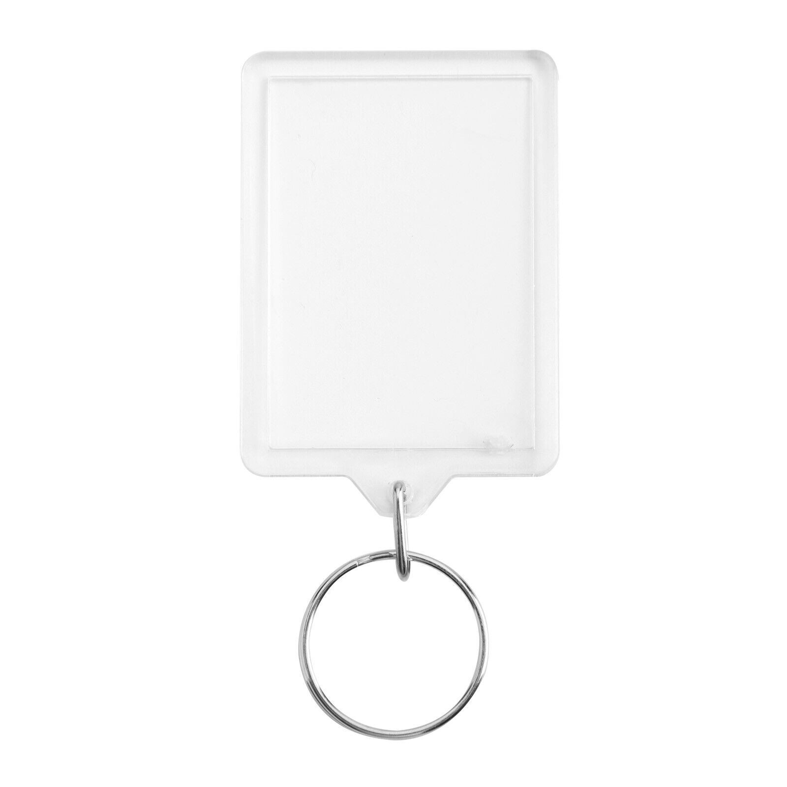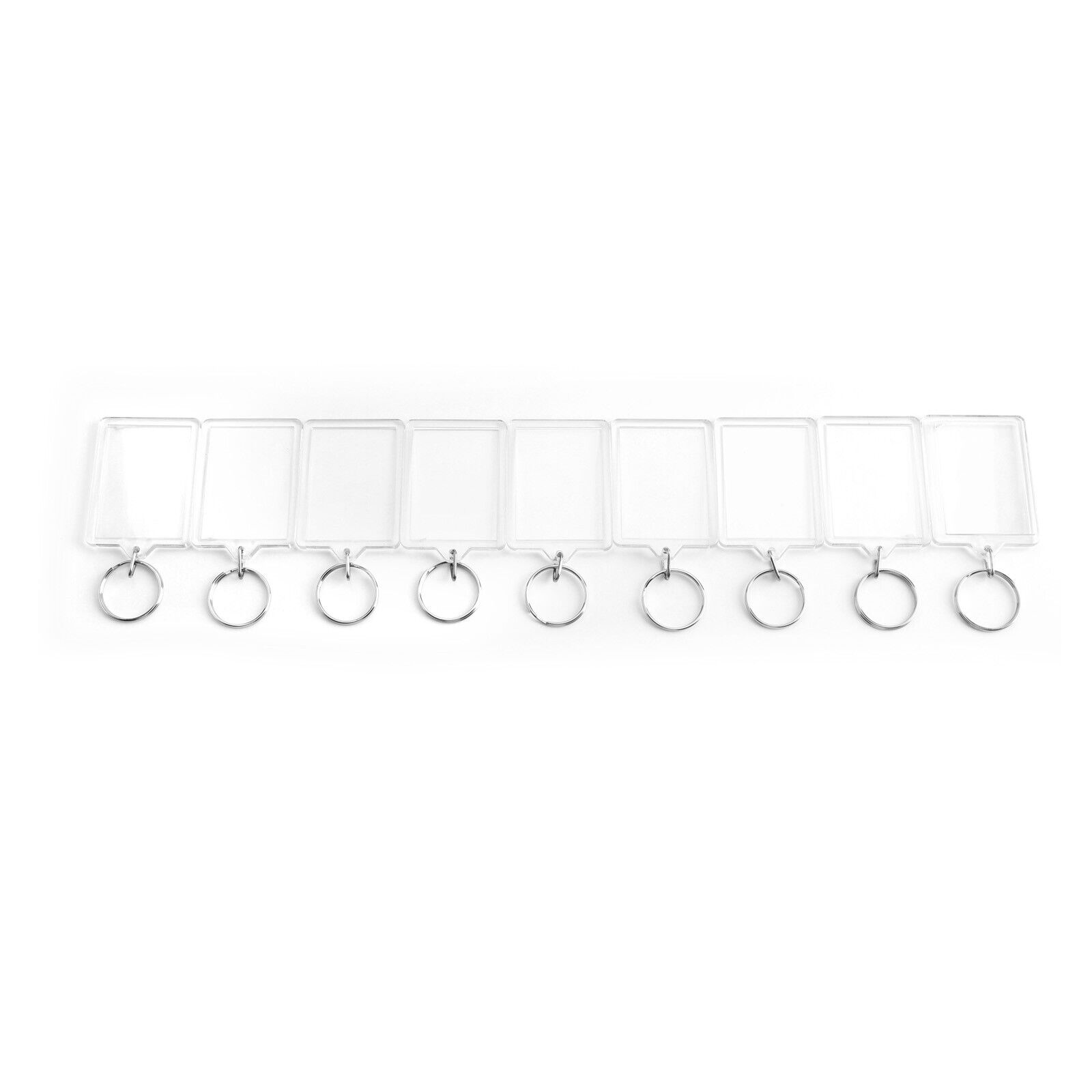 Easy to assemble shatter resistant clear acrylic plastic keyrings.