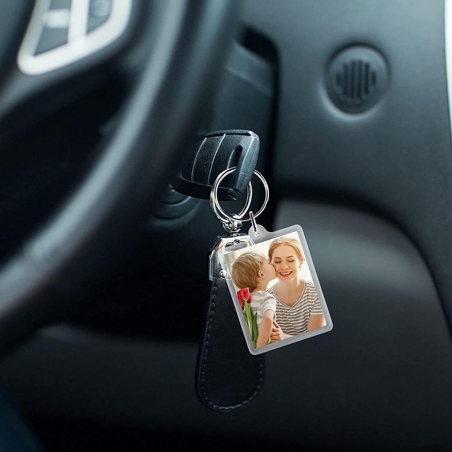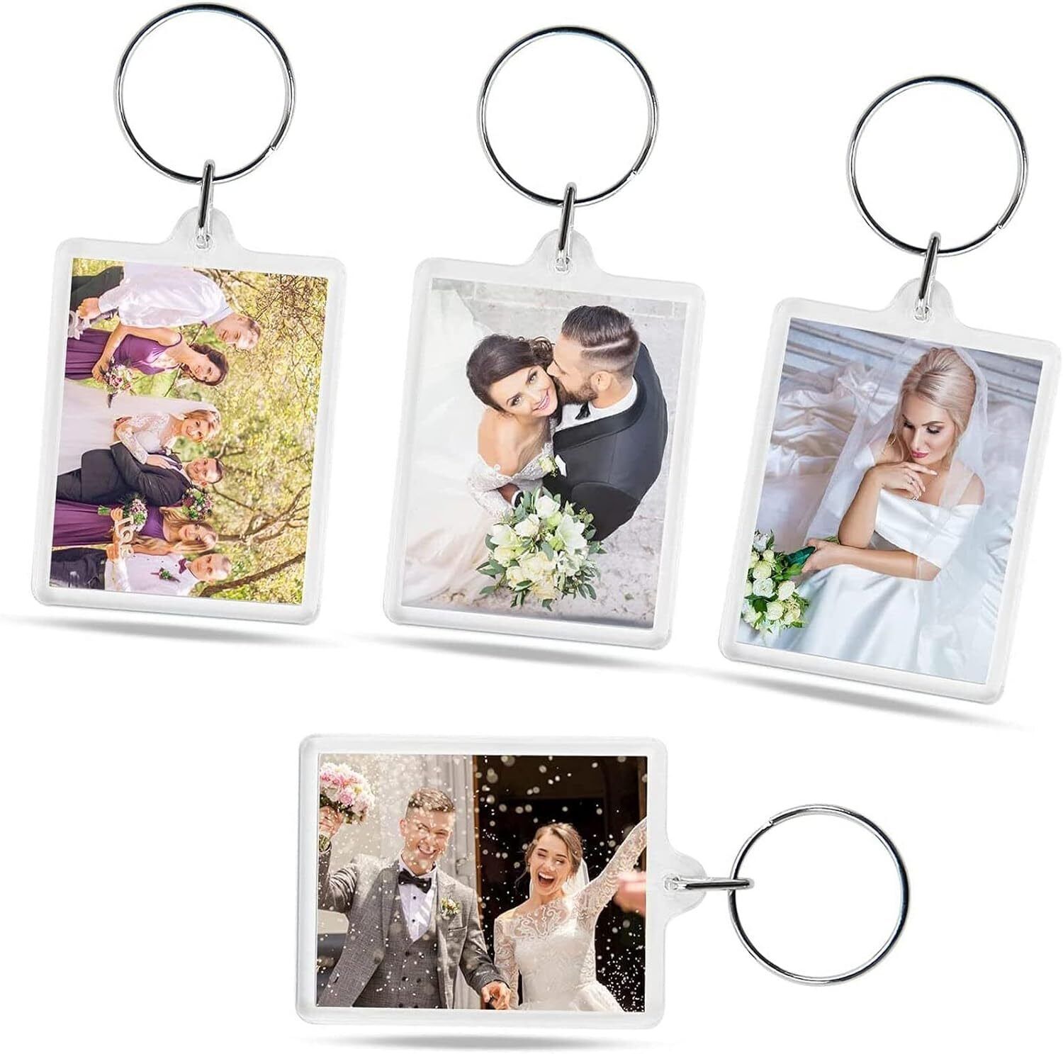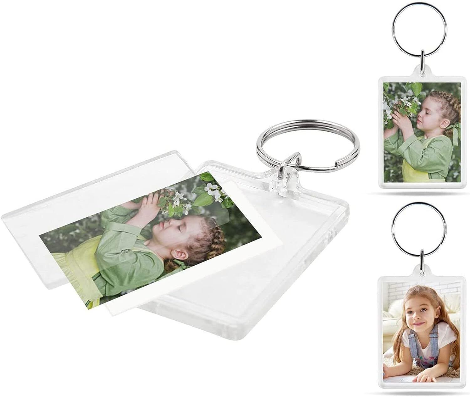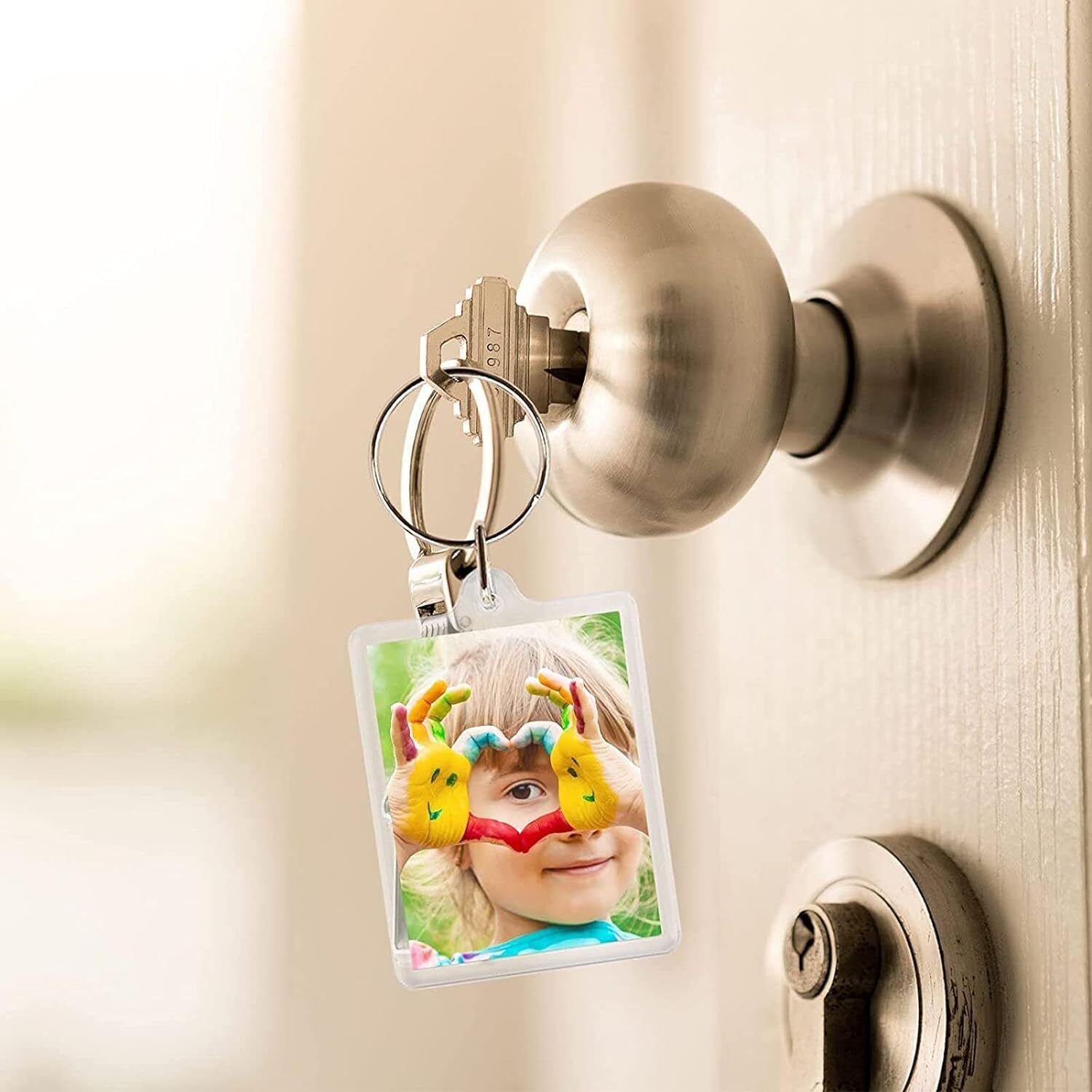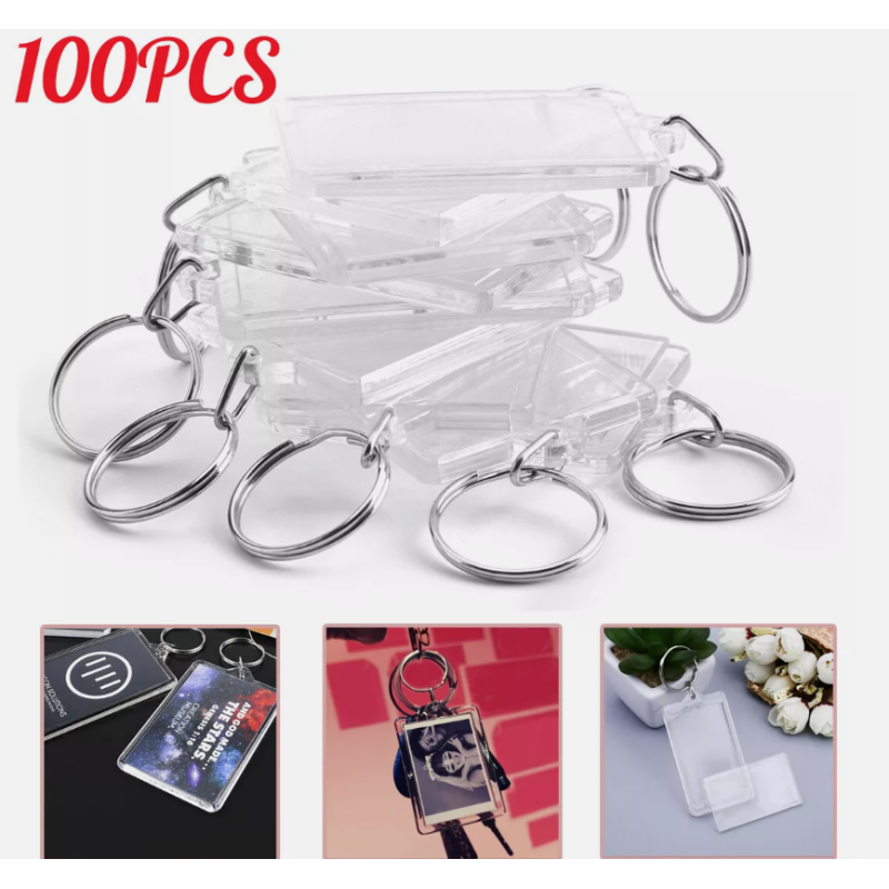 Easy to assemble shatter resistant clear acrylic plastic keyrings.
