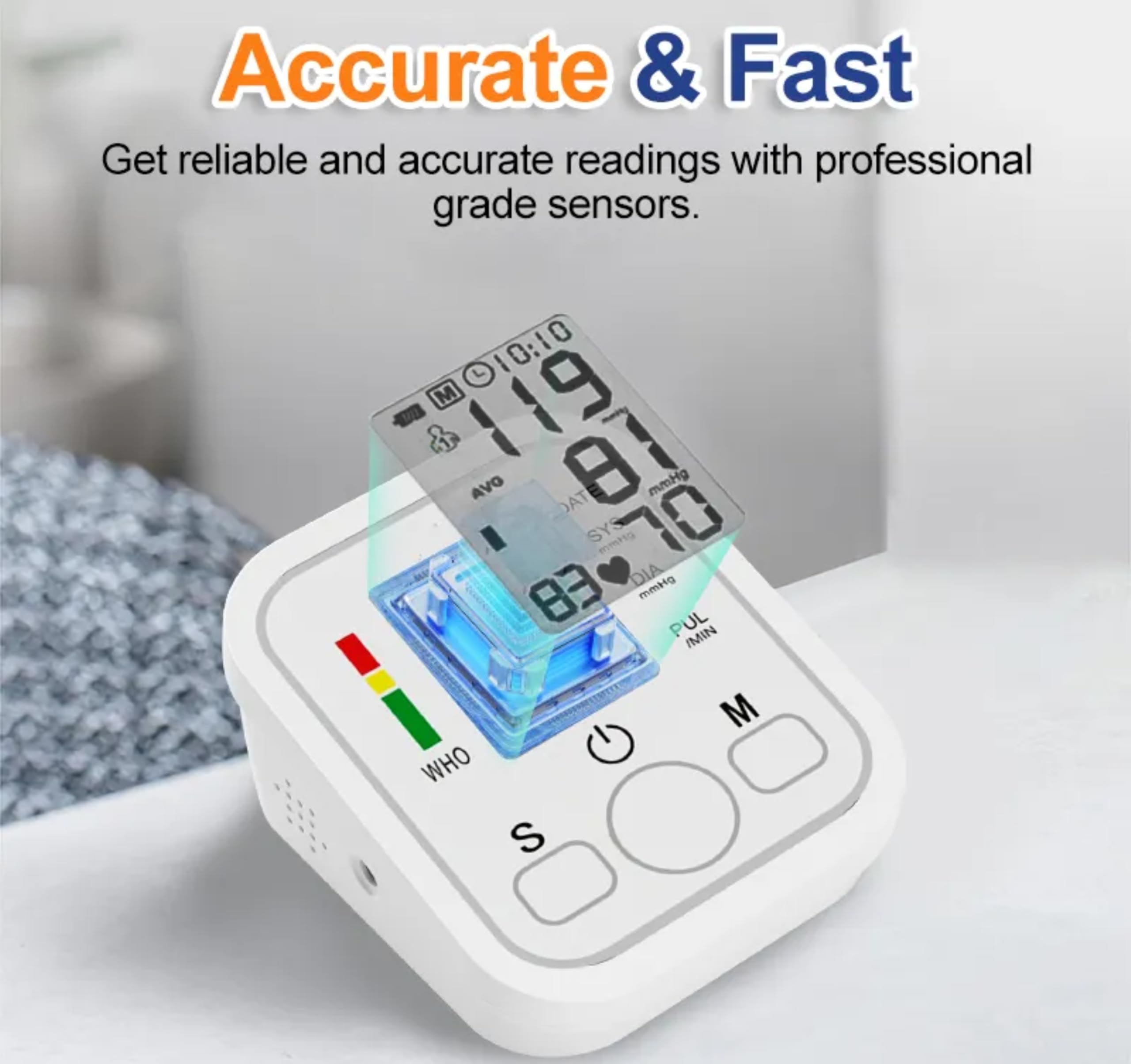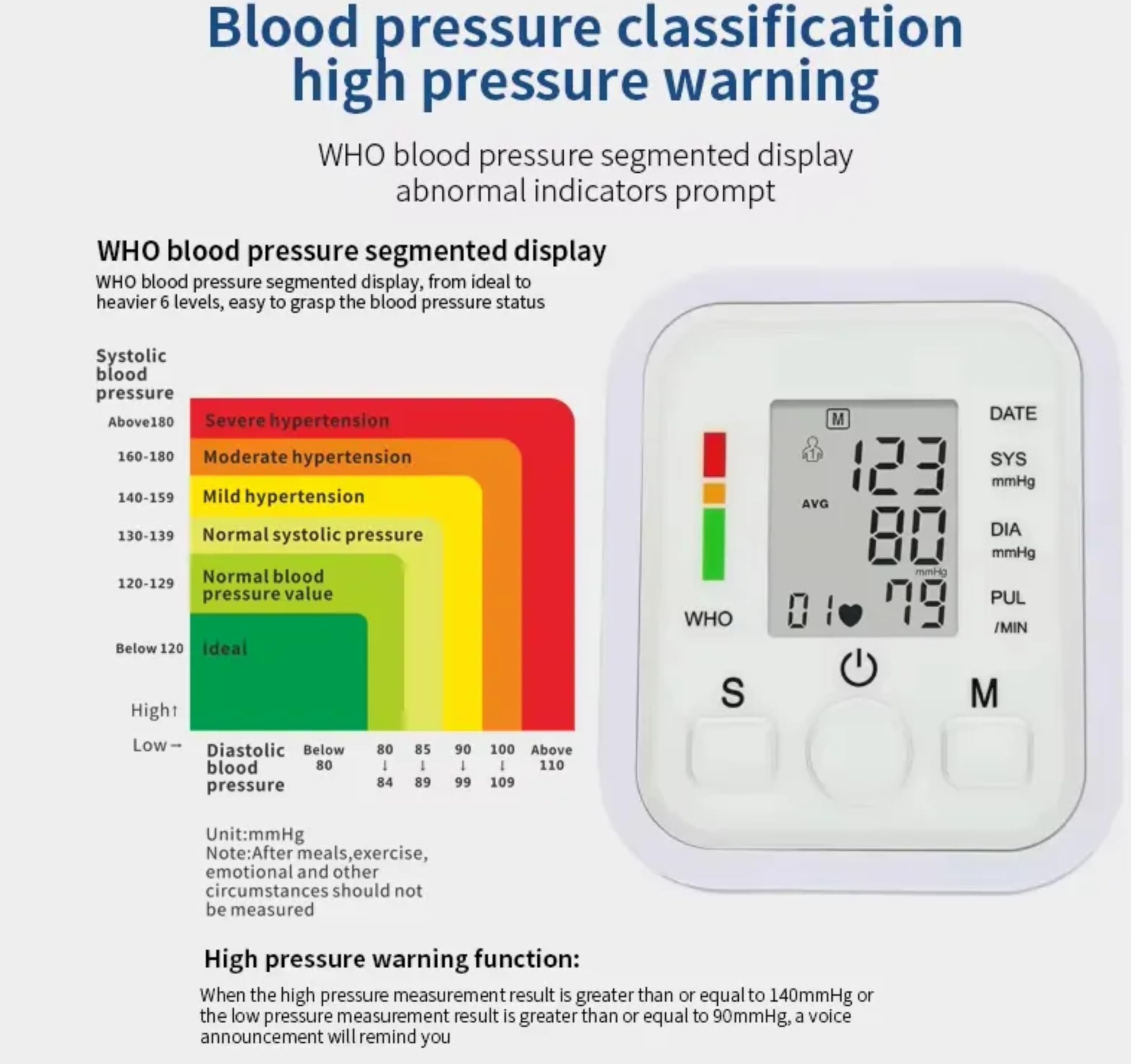 Blood Pressure Monitor With X4 AAA Battery, Large Cuff Digital Upper Arm BP Machine, 2x99 Memory Set, Voice Prompt, USB Cable, Arrhythmia Detection, Heart Rate Hypertension Monitors, Home Use White