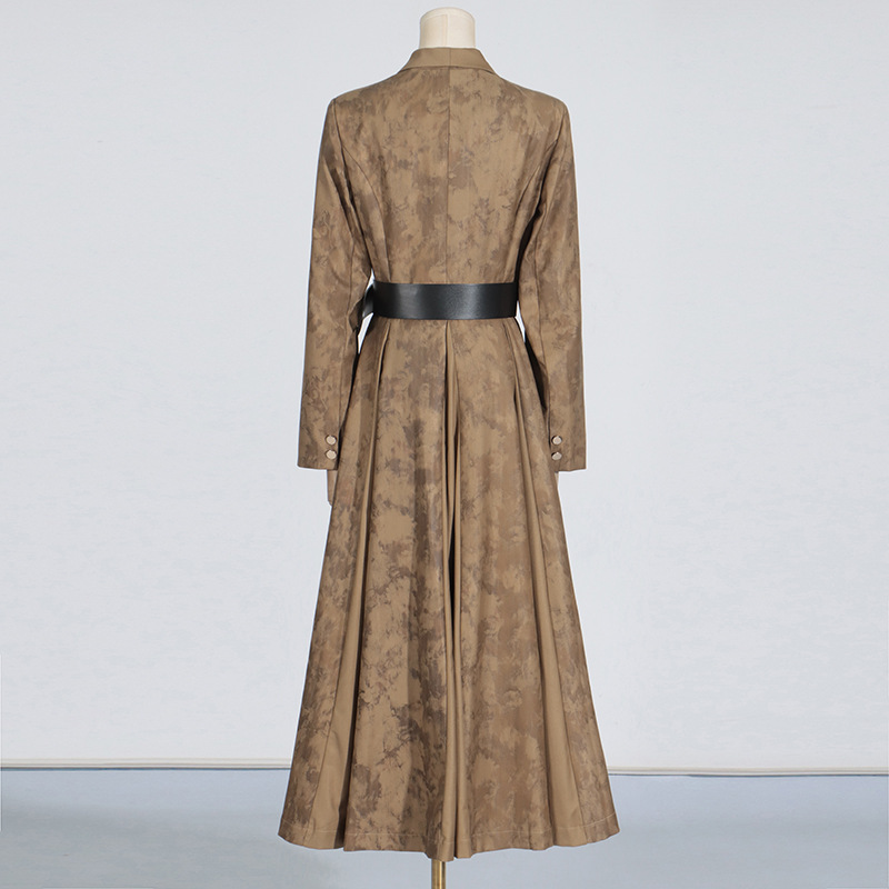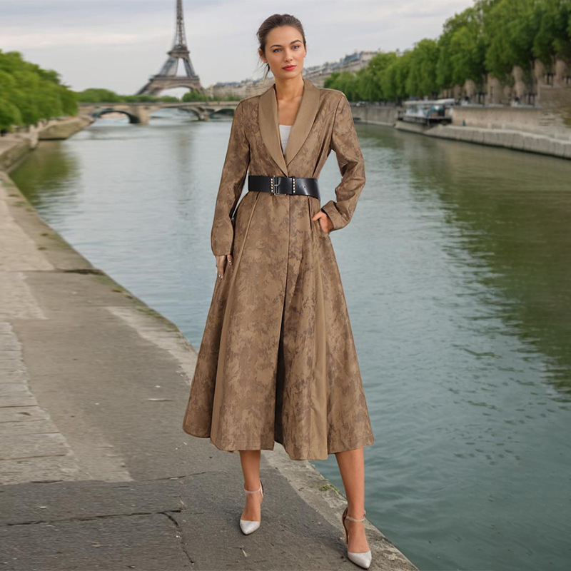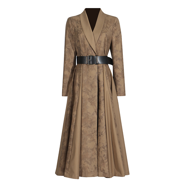 Blooming Texture V-neck Leather Slimming Trench Coat Women