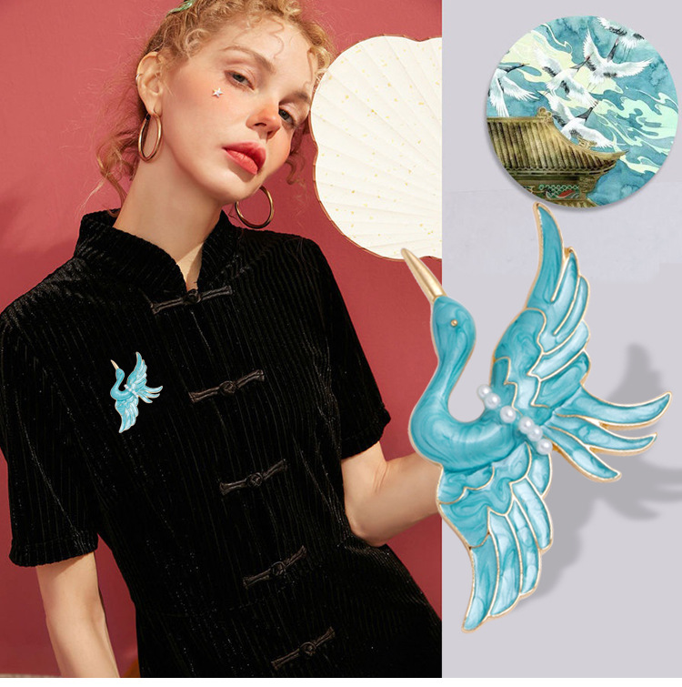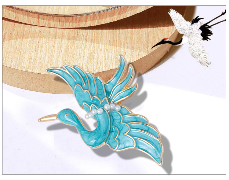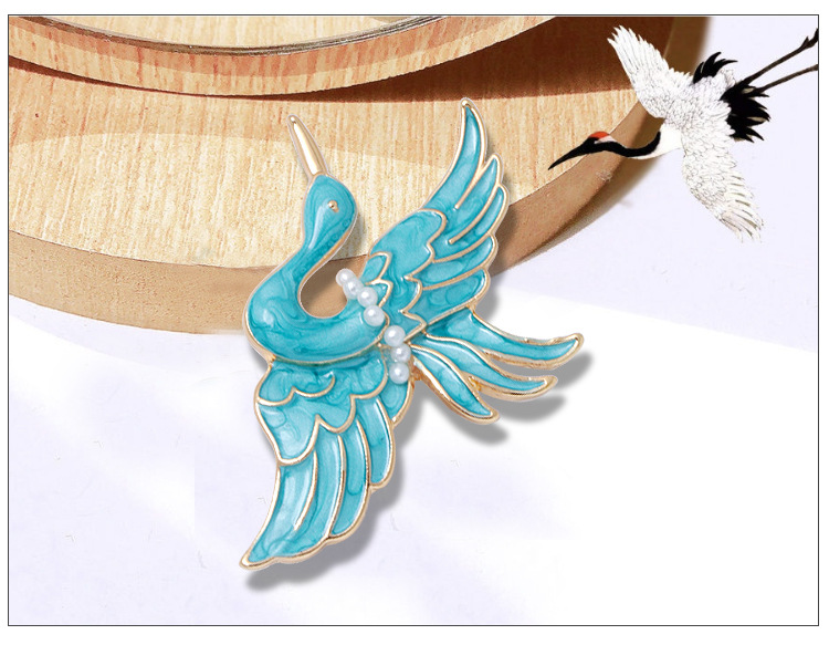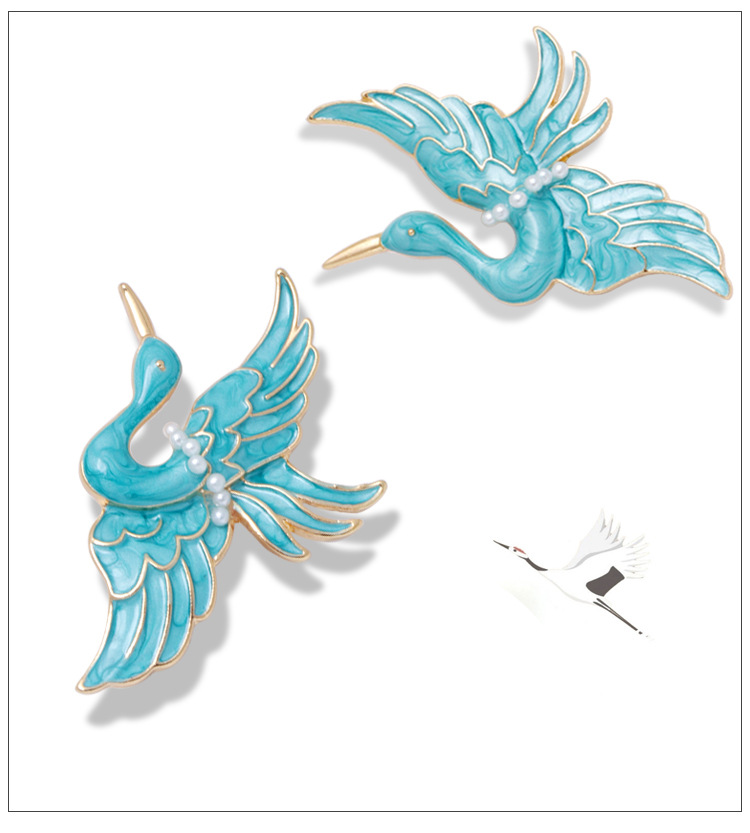 Blue Crane Brooch Enamel Drop Oil Pearl Brooch