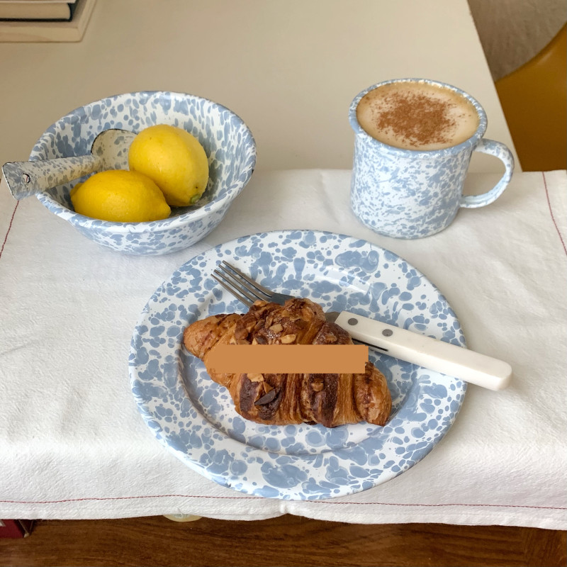 Color classification: baby blue splash ink spoon, full splash ink baby blue cup, full splash ink baby blue plate