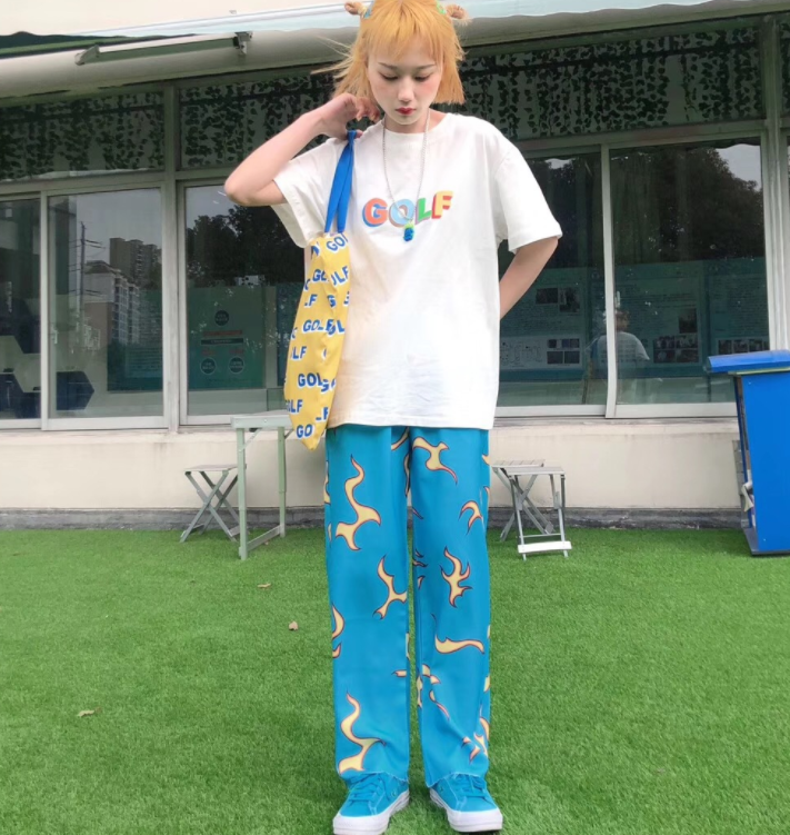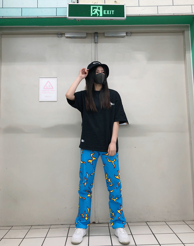Blue flame straight leg sweatpants are all the rage