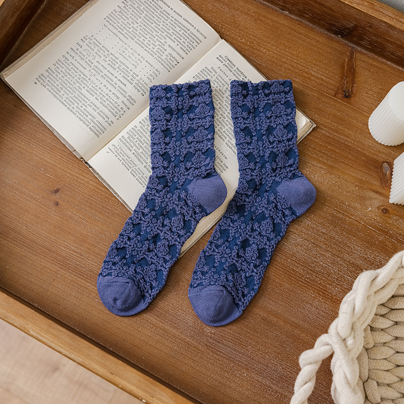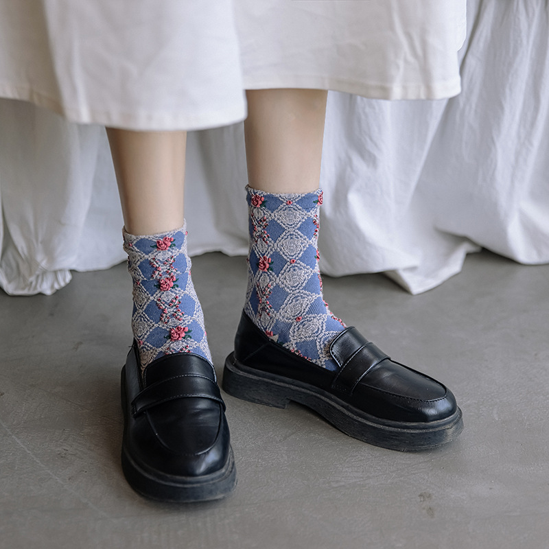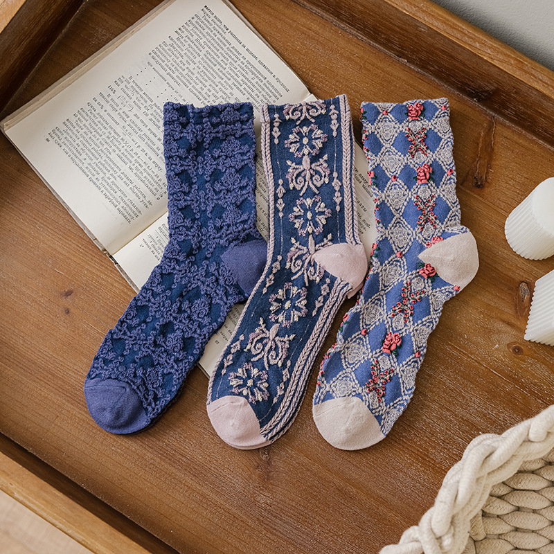 Color: Medium blue diamond rose, medium blue butterfly, medium blue turn-over yarn