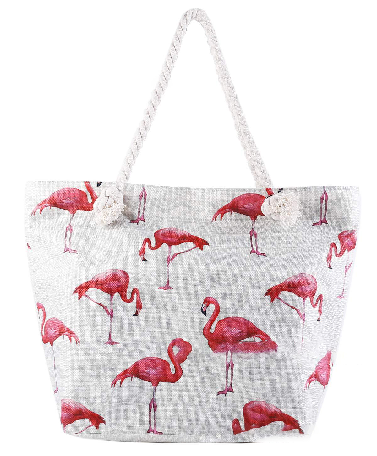 Color: striped beach bag, Pink Flamingo, boho, black and white circle, leaves, geometric figure