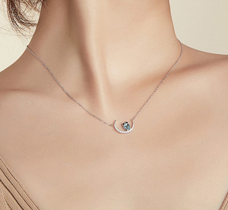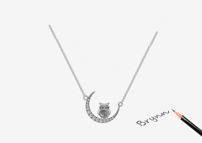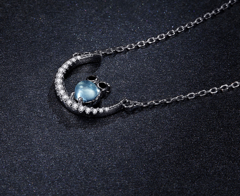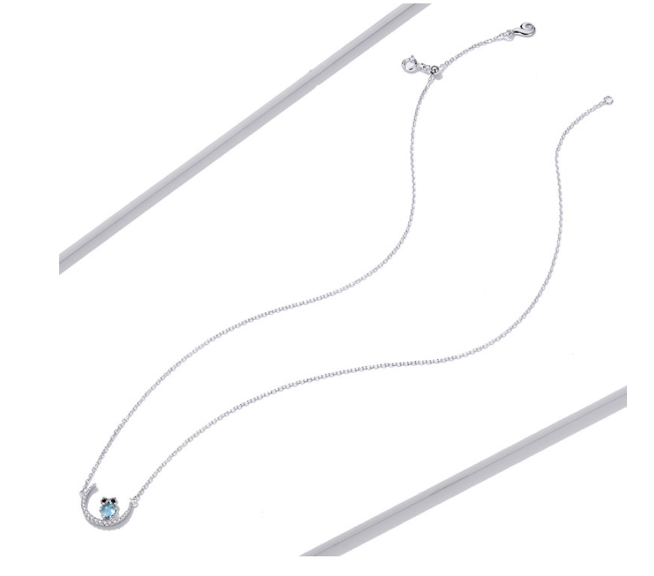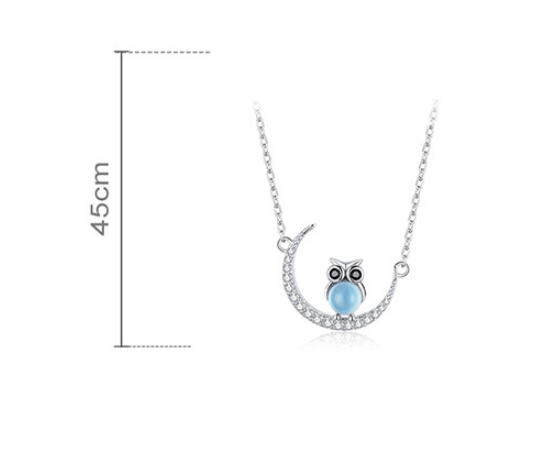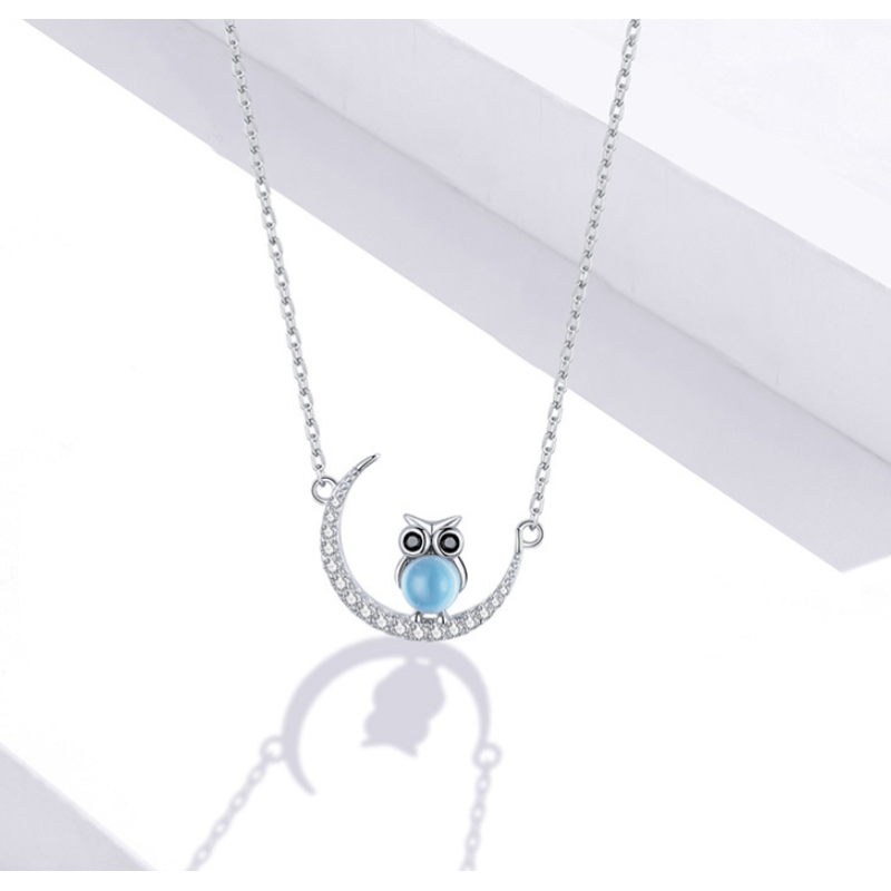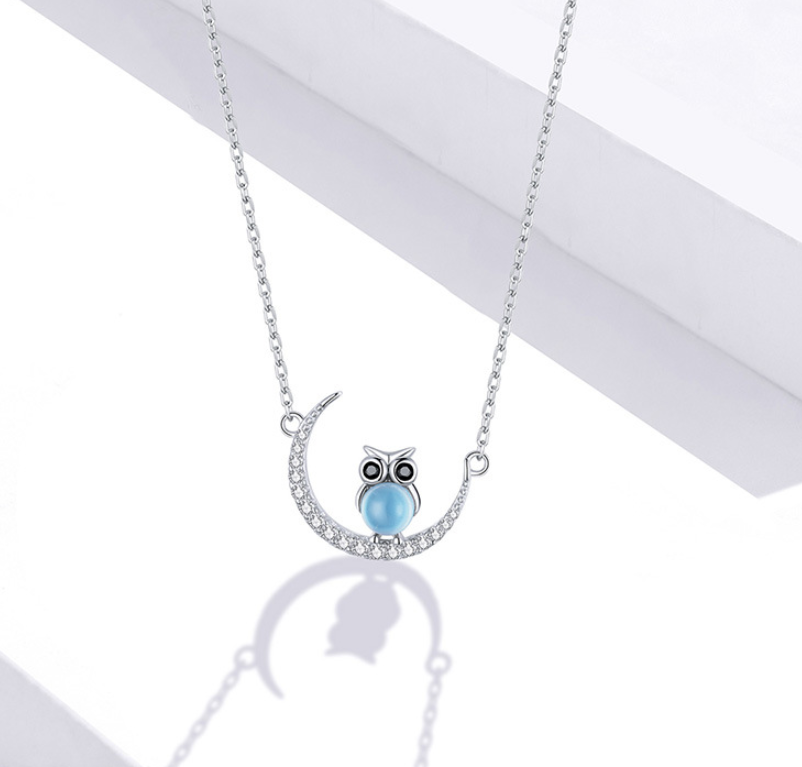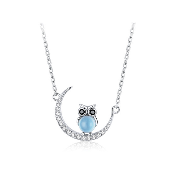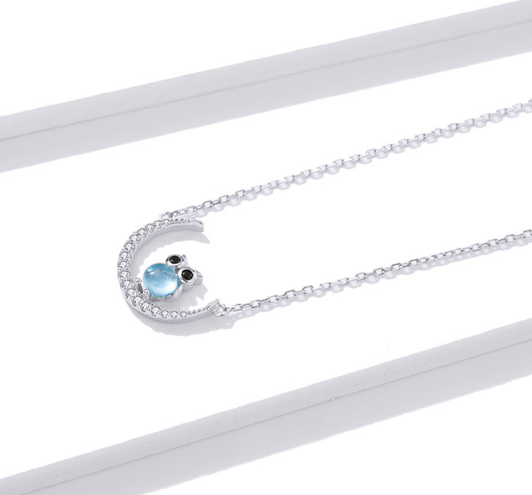 Blue Glass Moon Owl Necklace