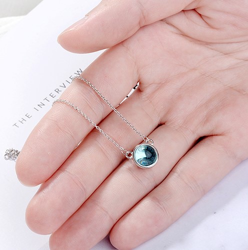 Blue gradient round temperament clavicle chain