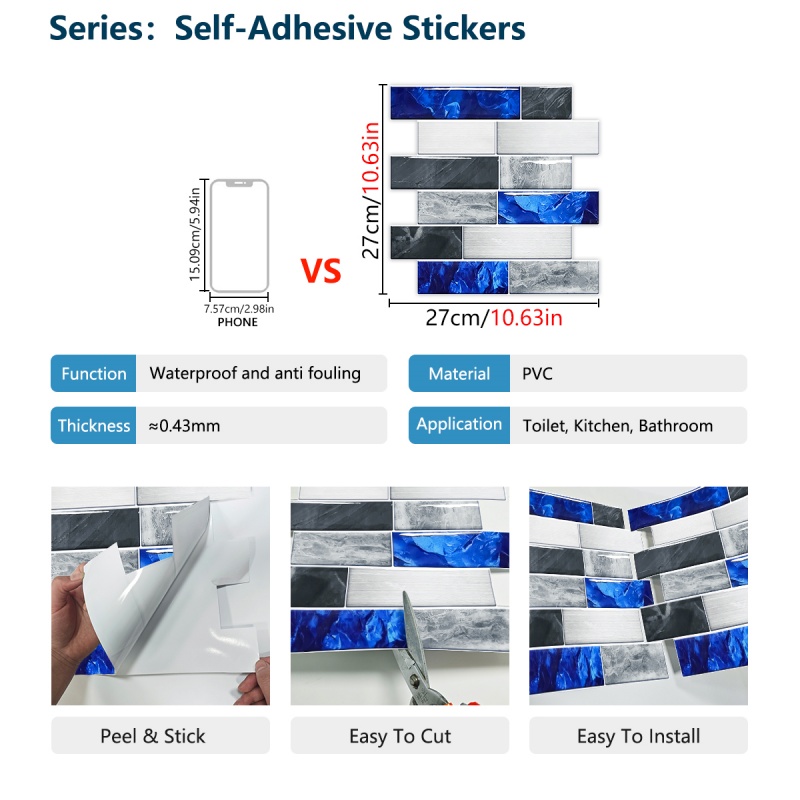 Blue Grey Marble Effect PVC Self Adhesive Marble Kitchen Splashback Tile Waterproof Peel And Stick Wallpaper Easy To Install Easy DIY