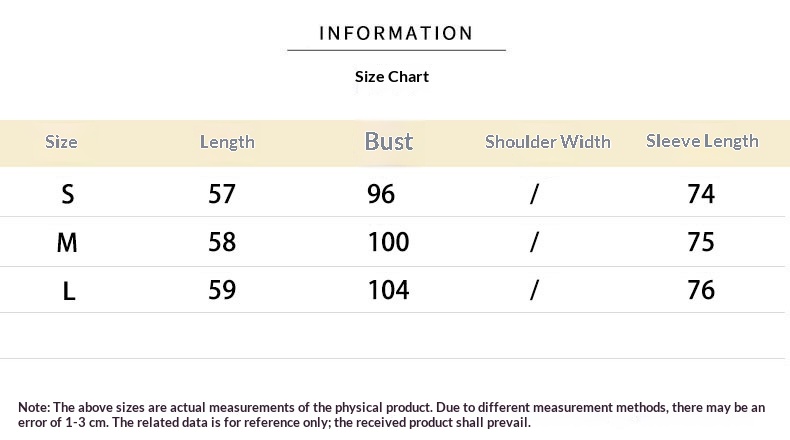 1. Asian sizes are 1 to 2 sizes smaller than European and American people. Choose the larger size if your size between two sizes. Please allow 2-3cm differences due to manual measurement. 2. Please check the size chart carefully before you buy the item, if you don't know how to choose size, please contact our customer service. 3.As you know, the different computers display colors differently, the color of the actual item may vary slightly from the following images.