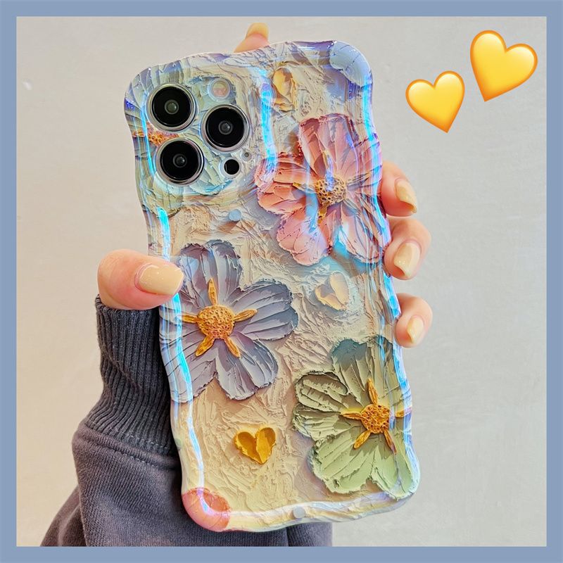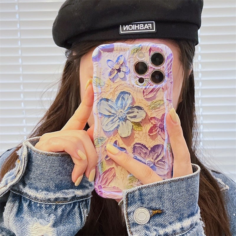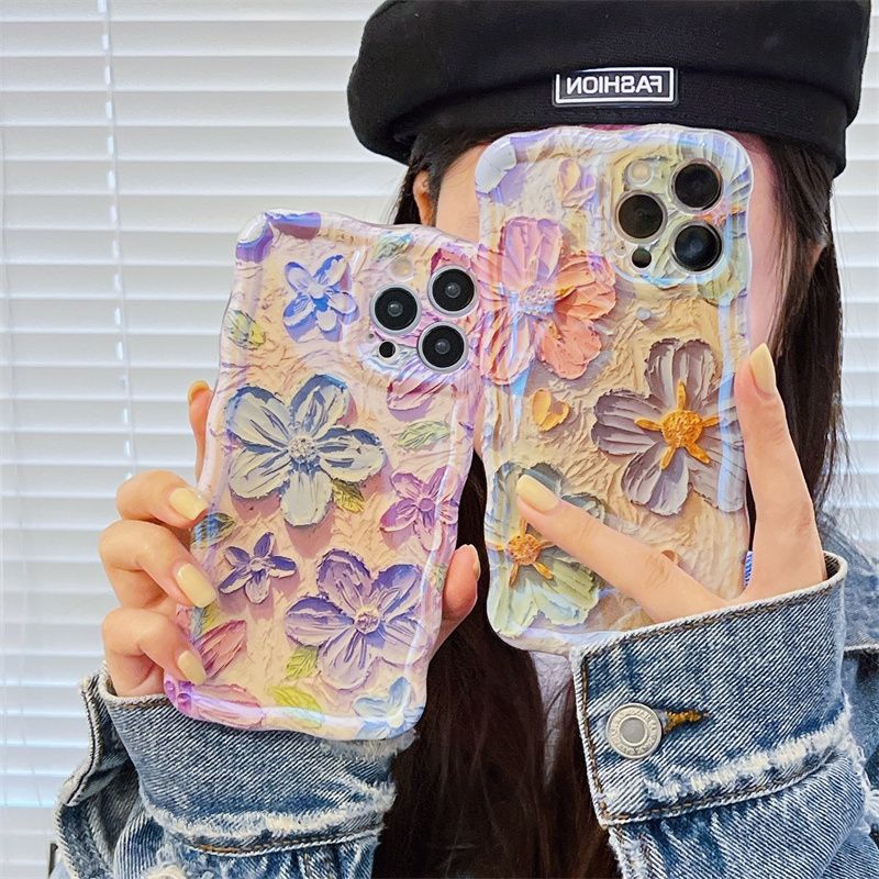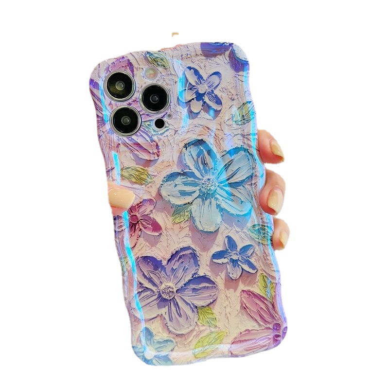 Color: G Wave Oil Painting - Green base - pink blue green flowers,G Wave Oil painting - Purple base - blue purple flowers