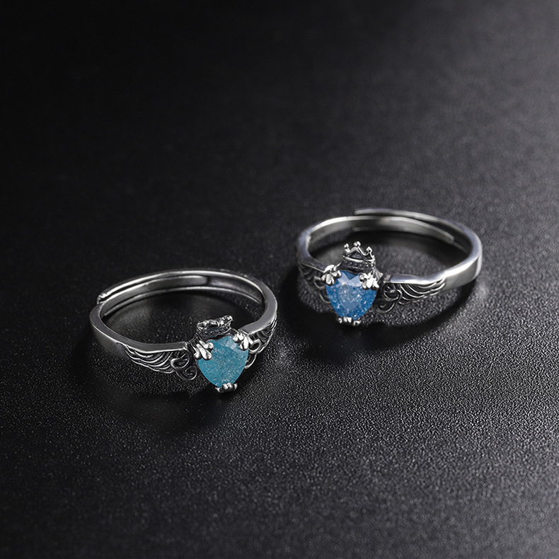 Blue Moonlight Silver Jewelry S925 Sterling Silver Japanese And Korean Trend Angel Wing Crown Ring