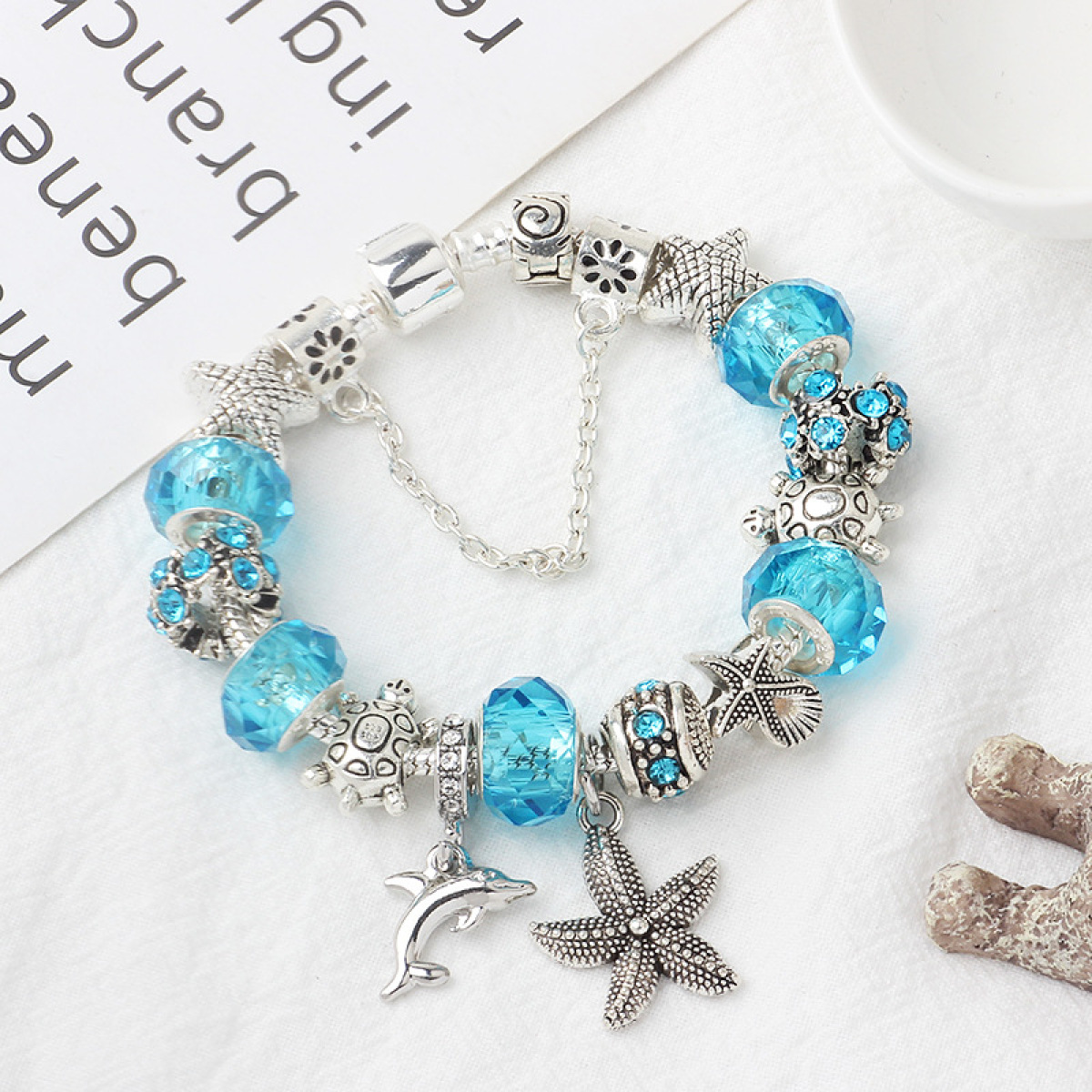 Blue Ocean Dolphin Starfish Pendant Beaded Bracelet
