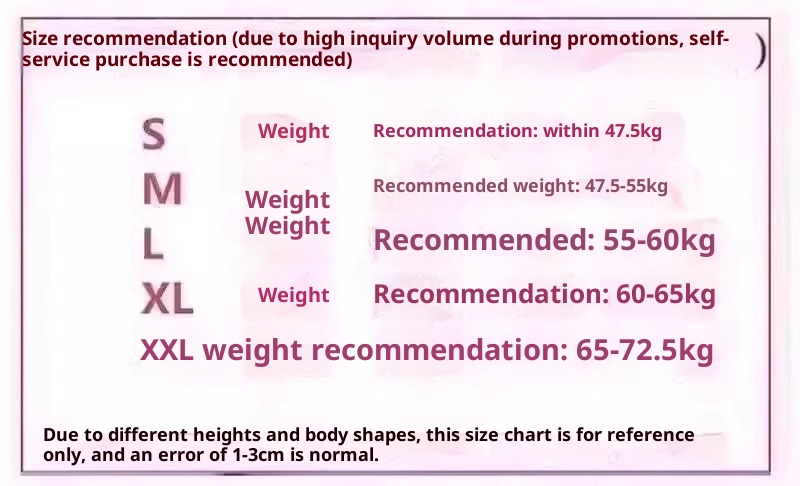 Size: S recommended 37.50kg-47.50kg,M recommended 47.50kg-52.50kg,L recommended 52.50kg-57.50kg,XL recommended 57.50kg-65.00kg,2XL recommended 65.00kg-75.00kg