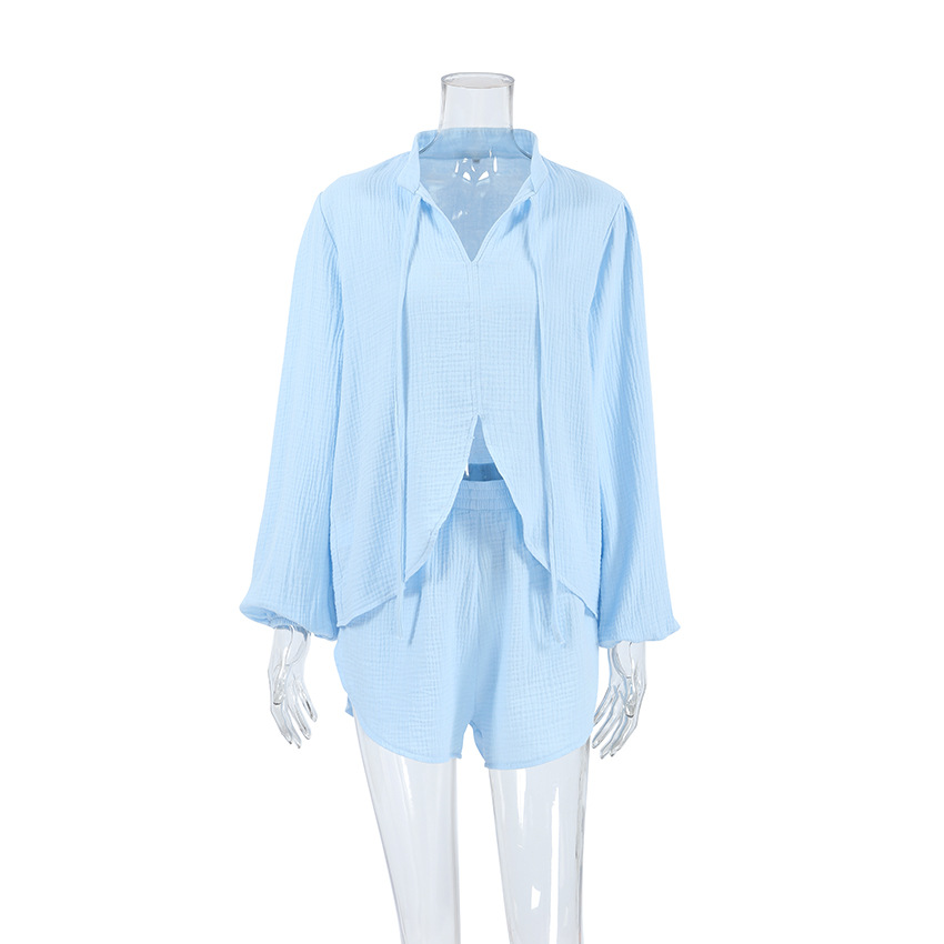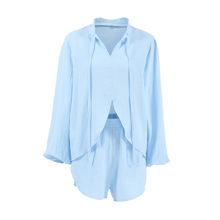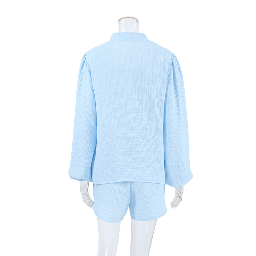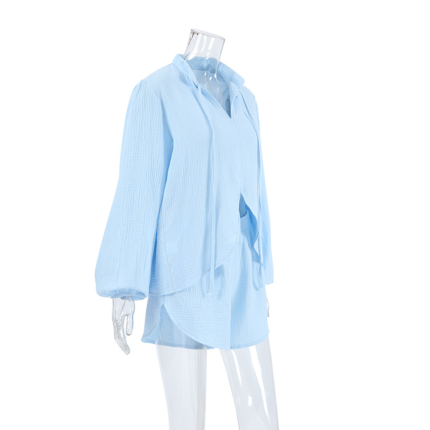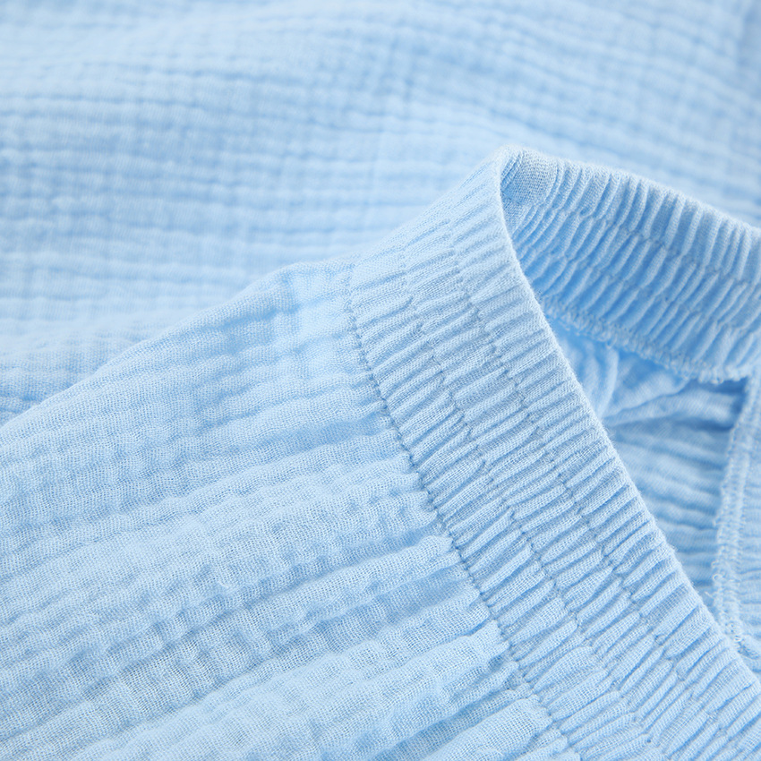 Blue Pure Cotton Drawstring Long-sleeve Shorts Soft