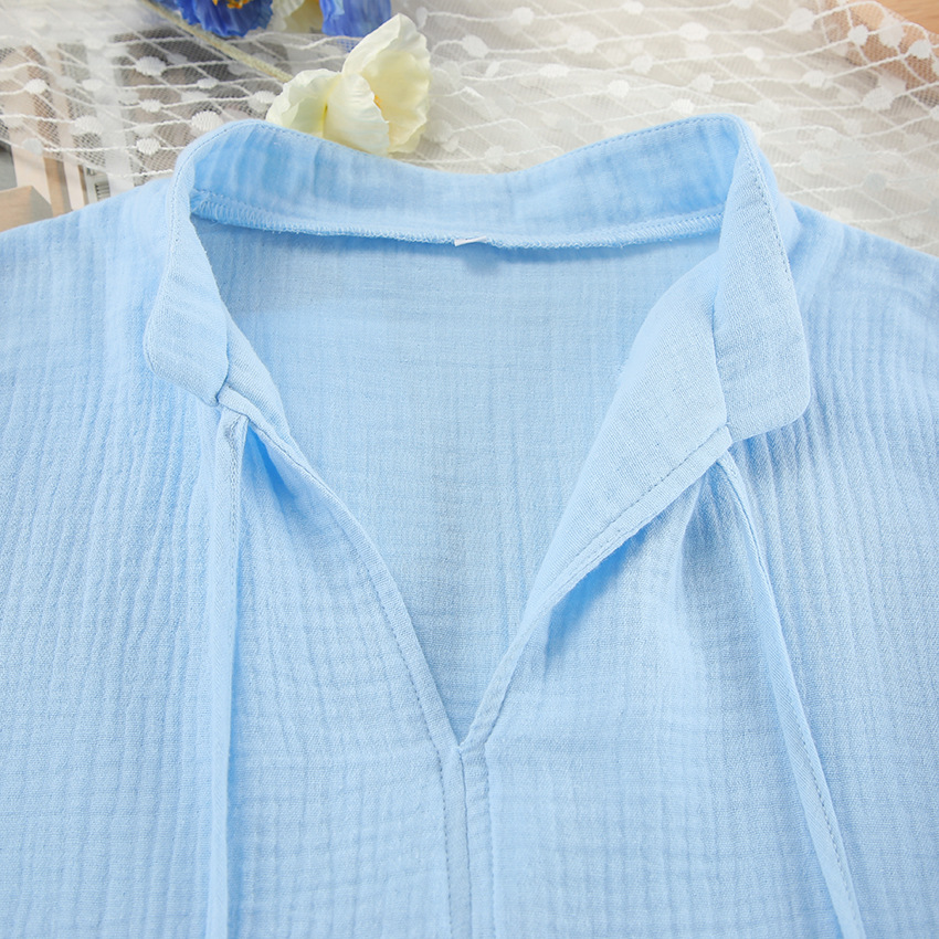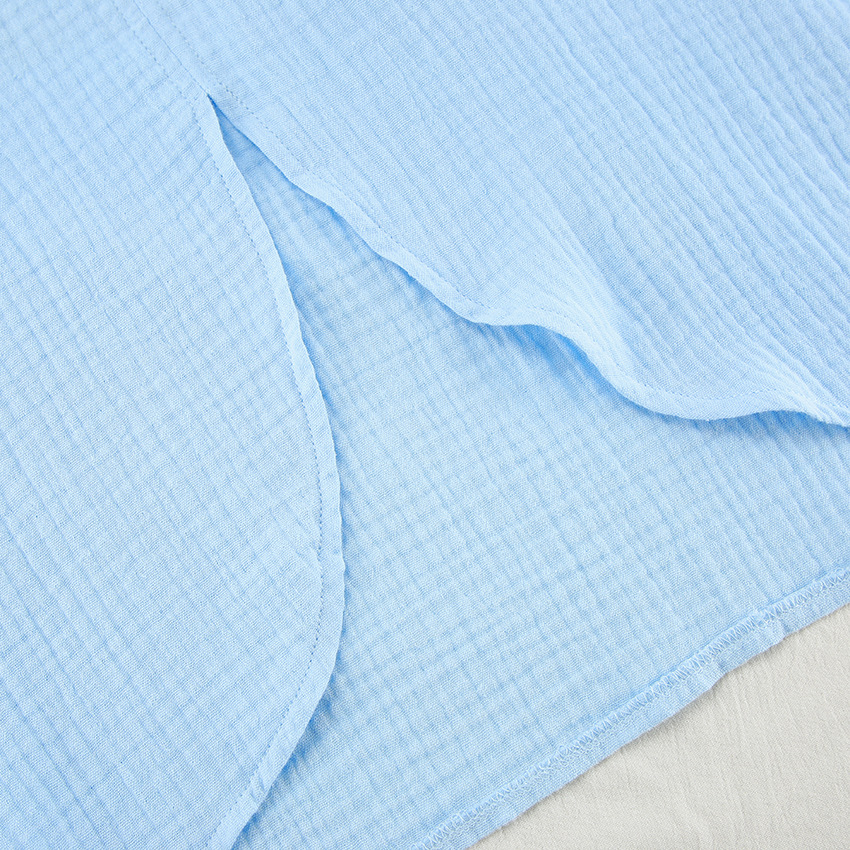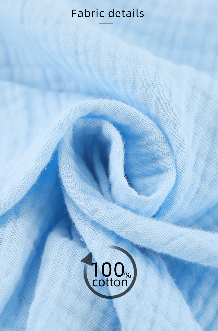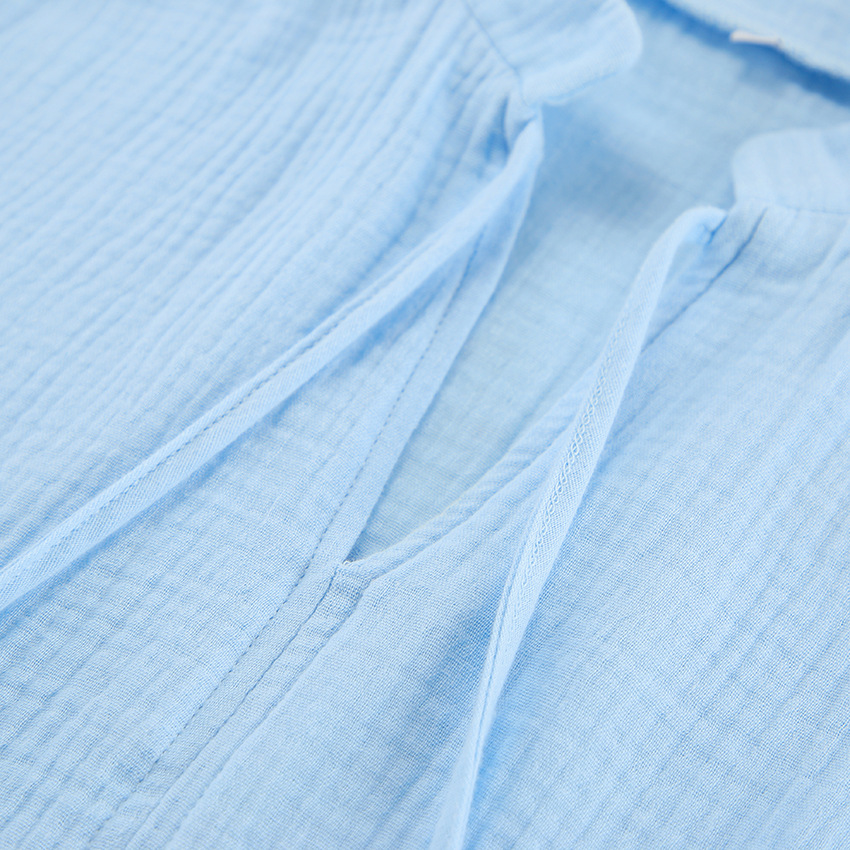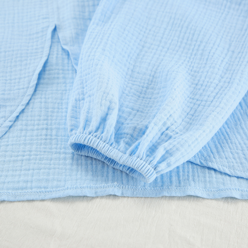 Blue Pure Cotton Drawstring Long-sleeve Shorts Soft