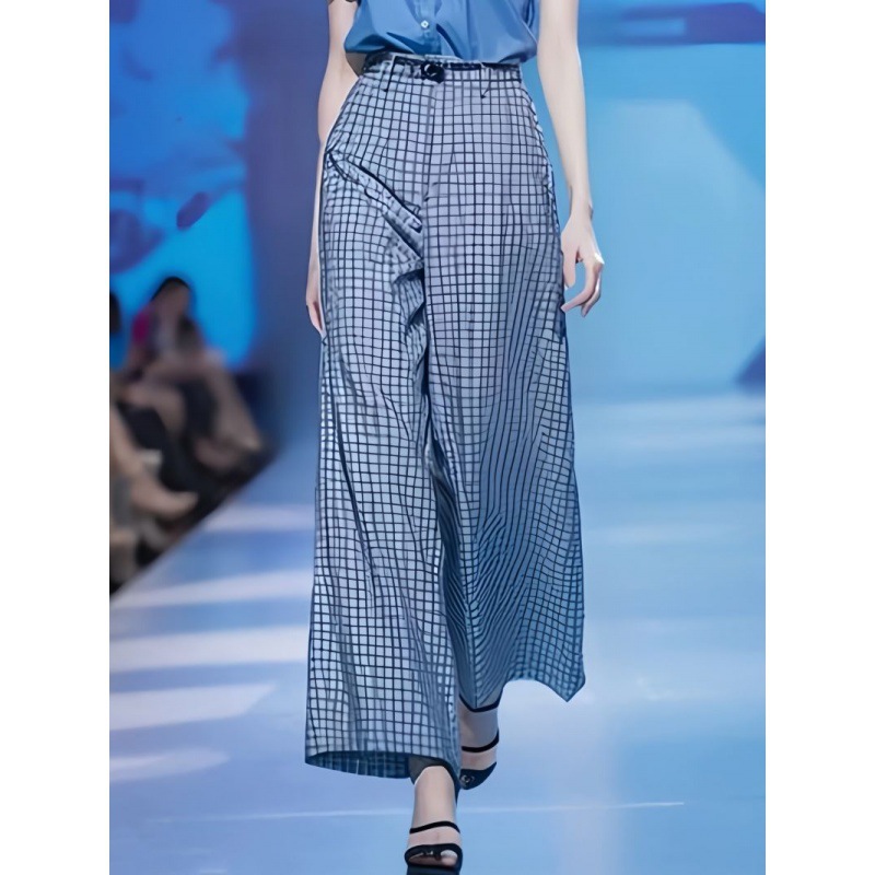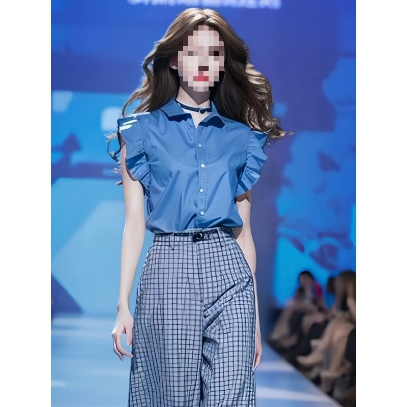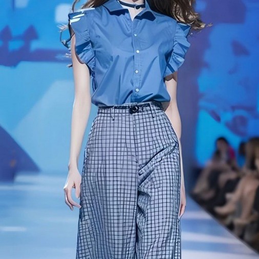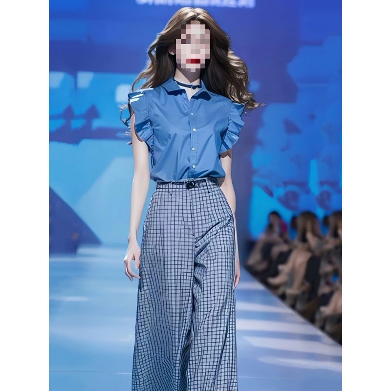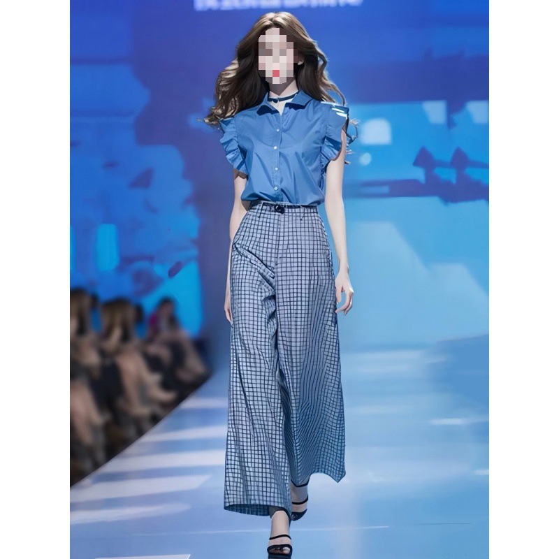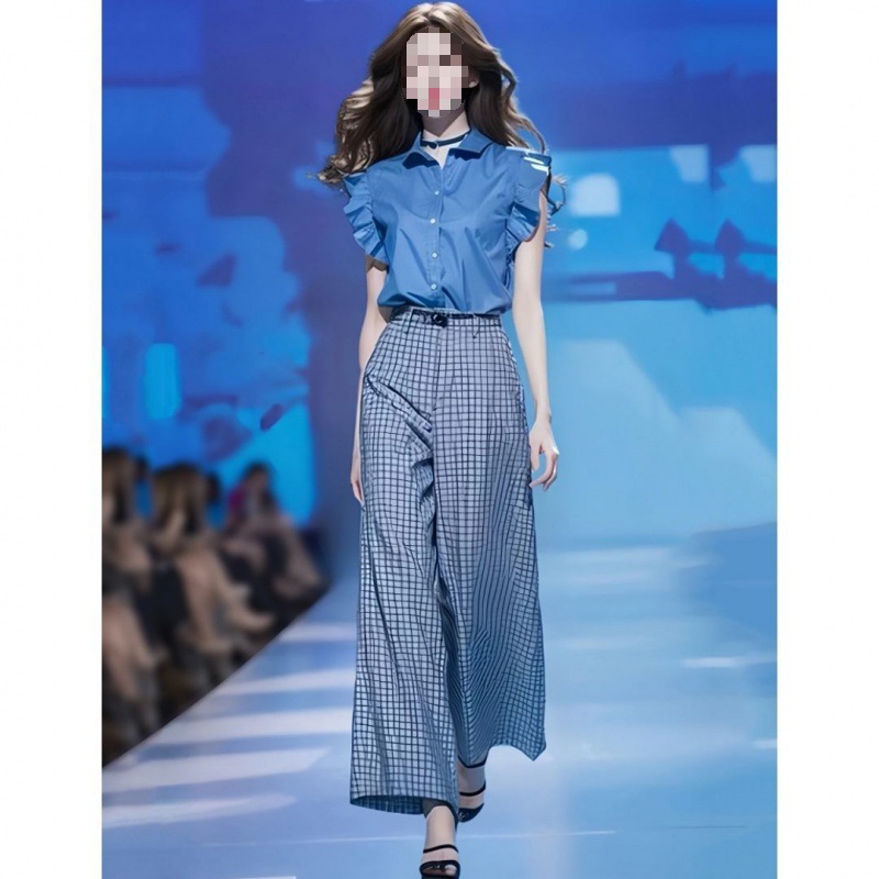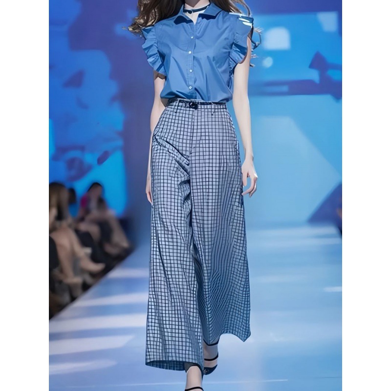 Blue Shirt And Loose Wide-leg Pants Two-piece Set