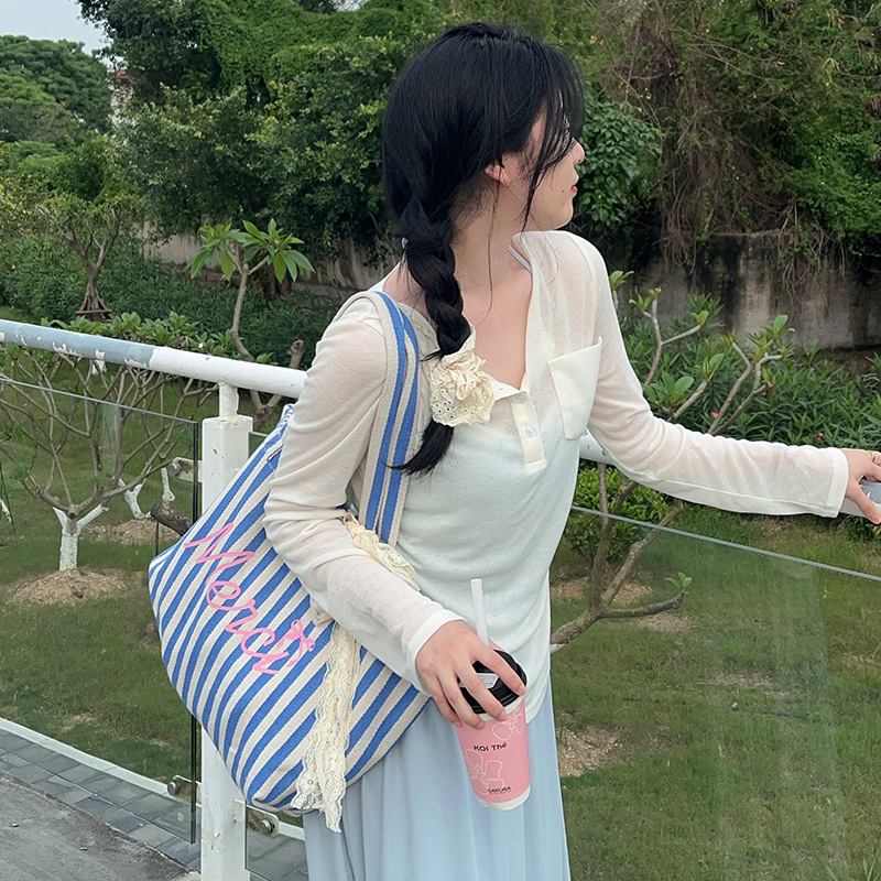 Product information:Applicable scenarios: Daily matchingColor: Pink blue and white stripesMaterial: CottonStyle: fresh and sweet