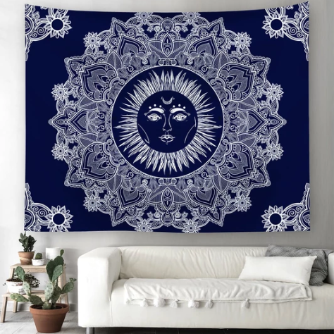 Blue Traditional Sun God Tapestry