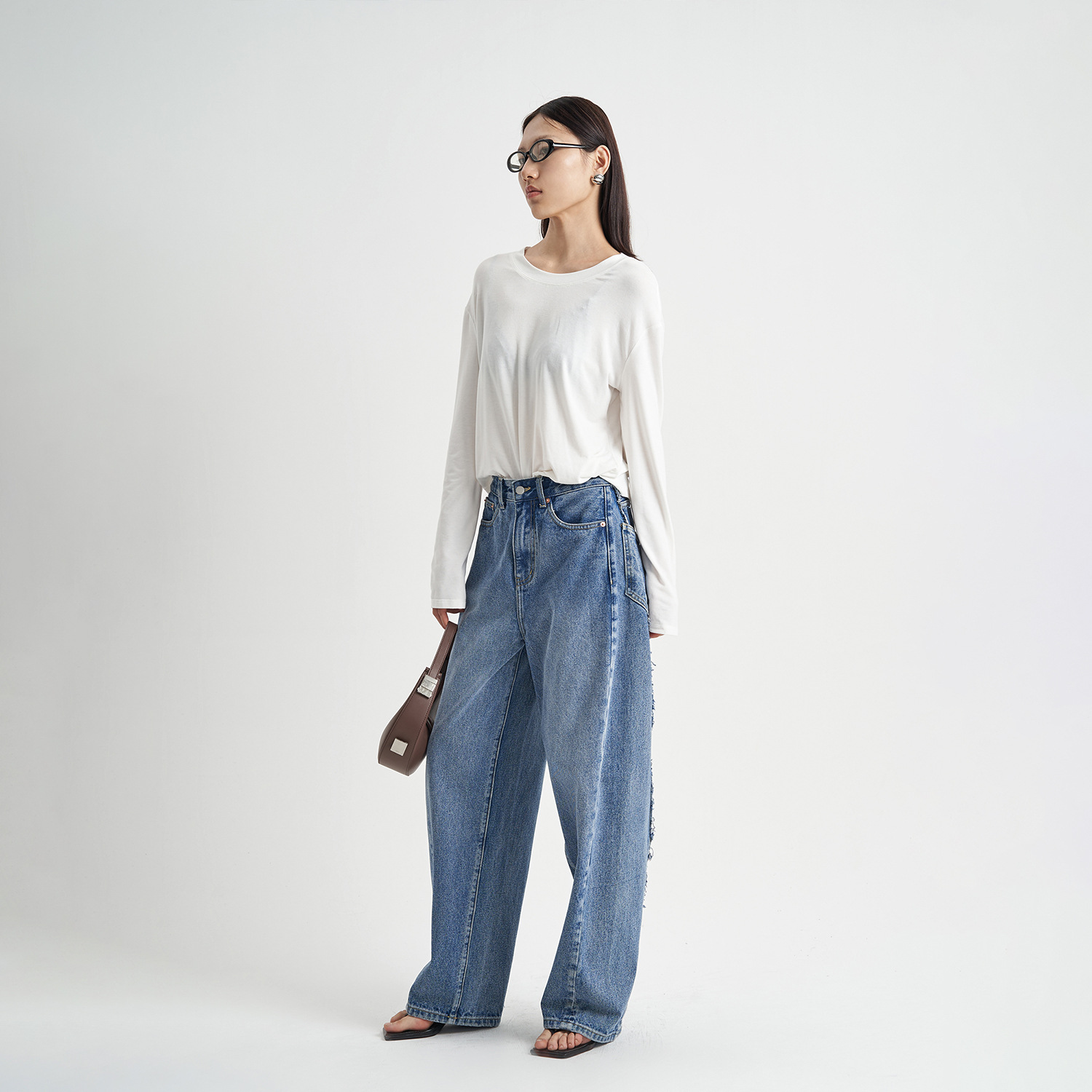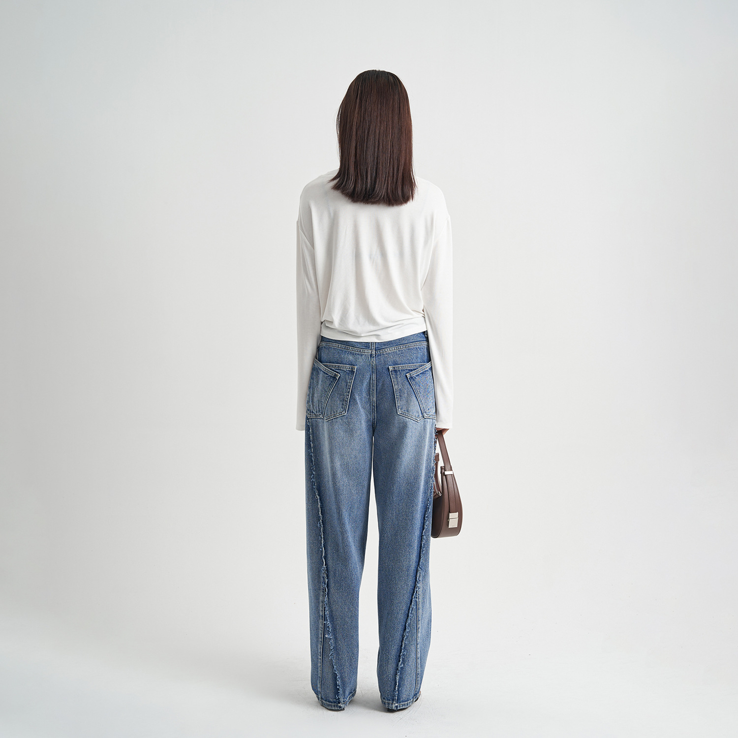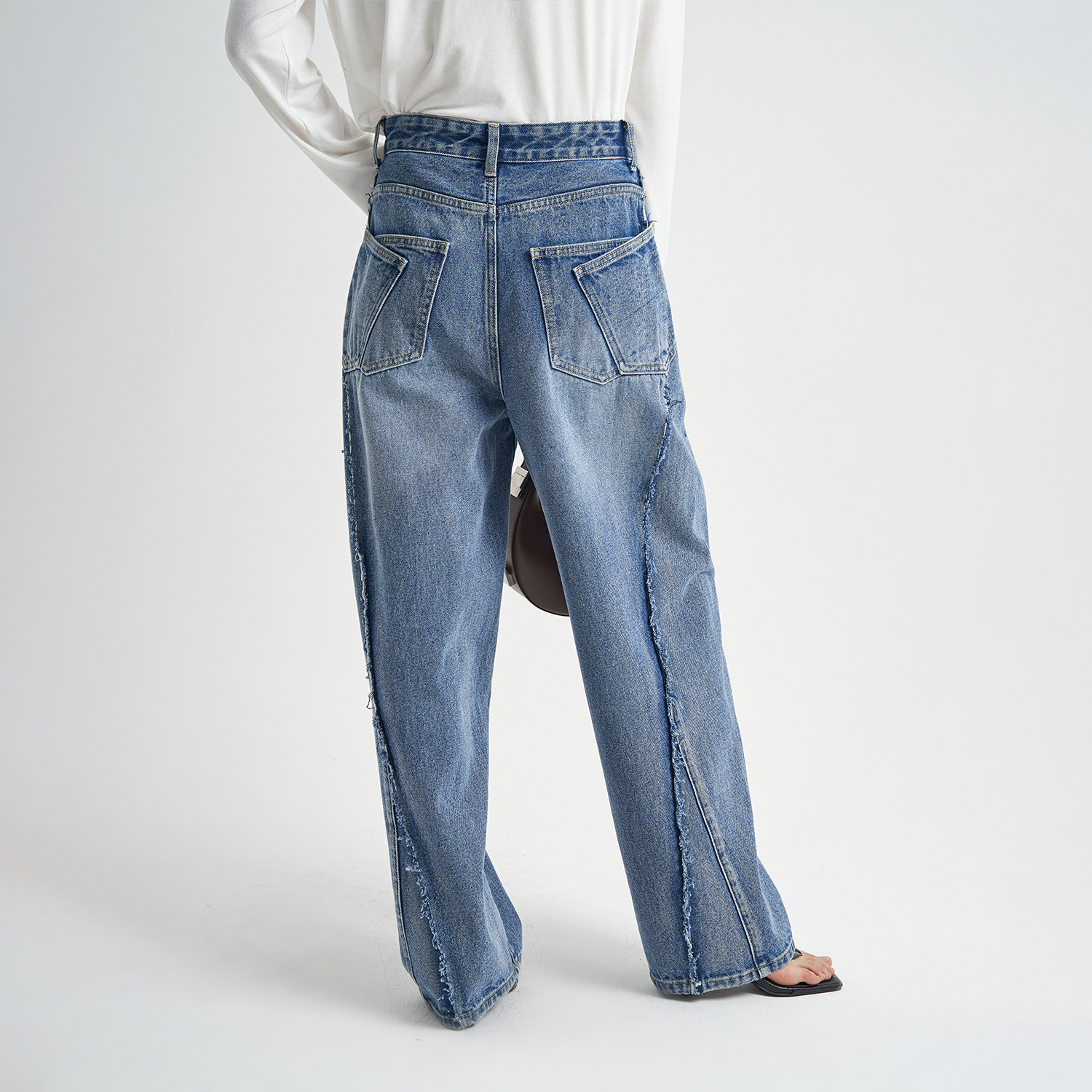 Blue Washed Loose Jeans High-end Women's Trousers High-grade