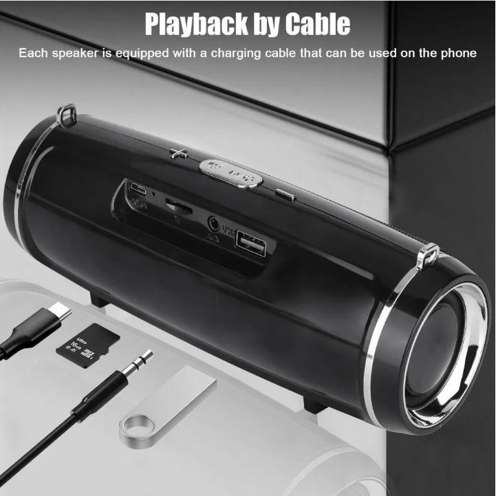 Includes: Bluetooth Speaker, Charging Cable, Shoulder Strap