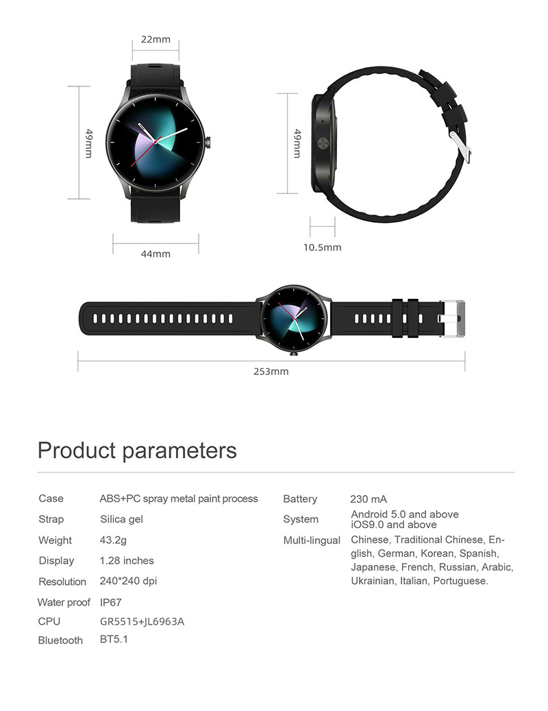 Functions: smart reminder, remote control selfie, sleep monitoring, blood oxygen detection