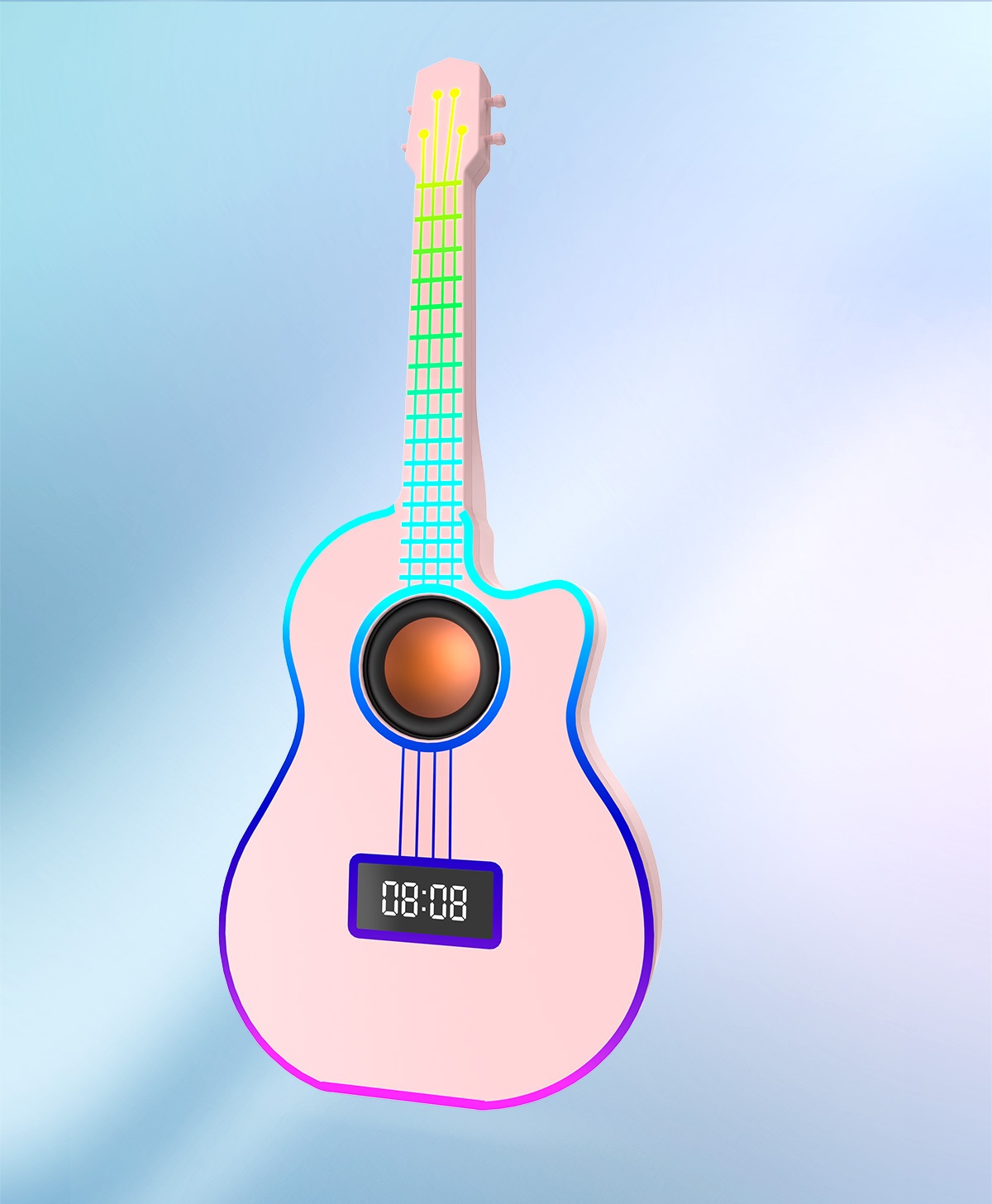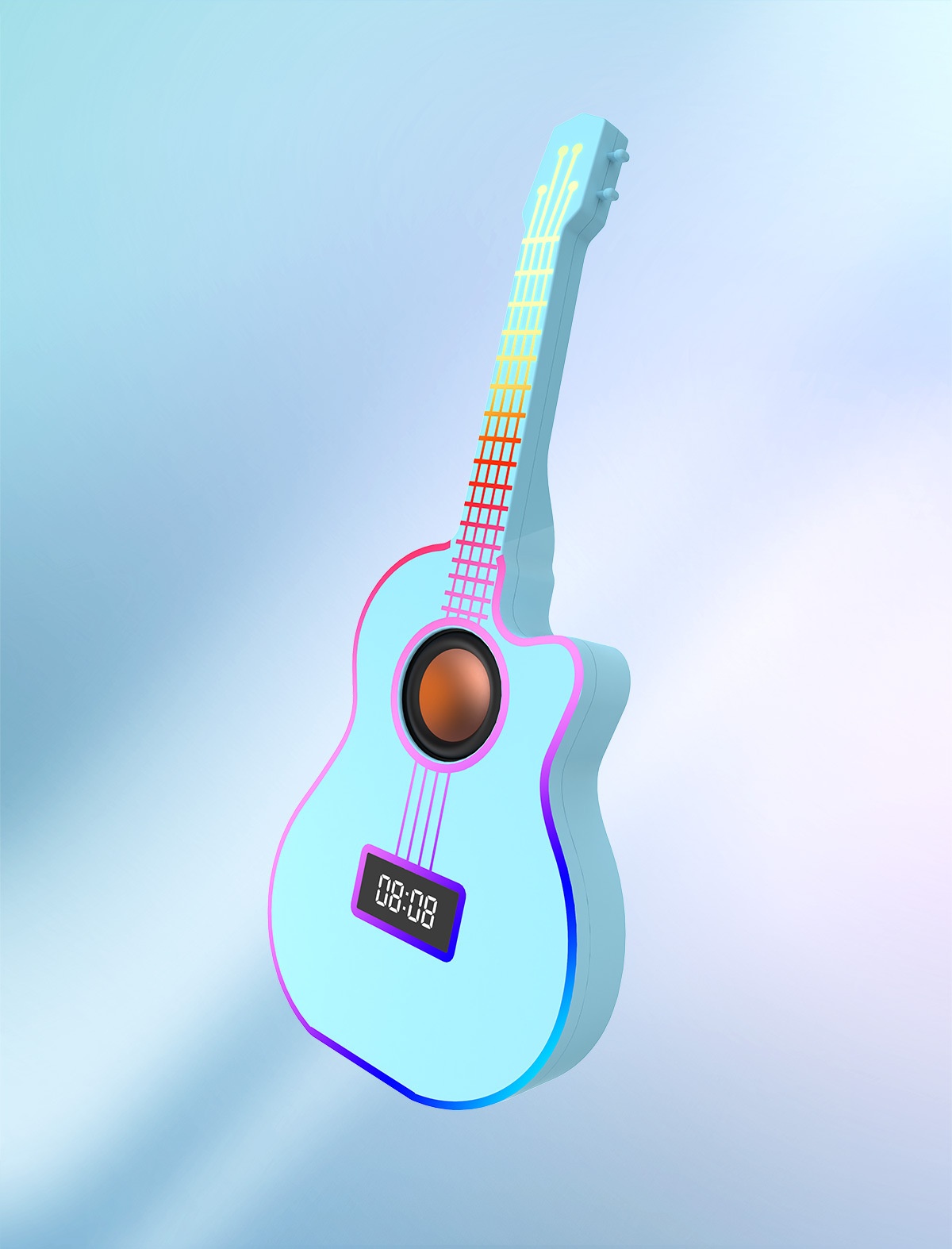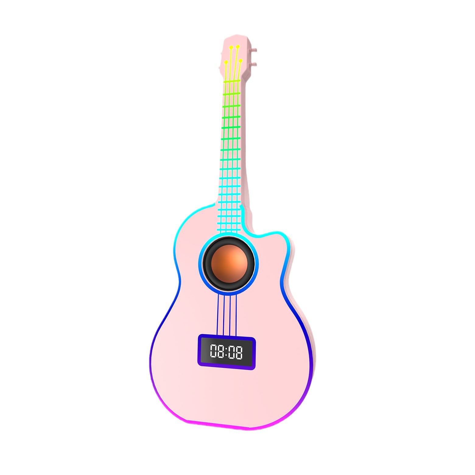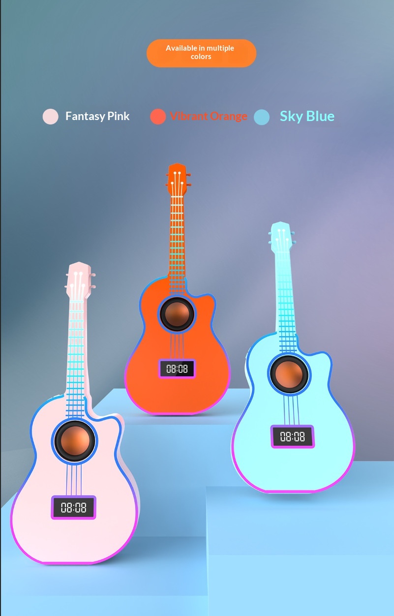 Bluetooth Guitar Speaker With An Alarm Clock And Vibrant Ambient Lighting