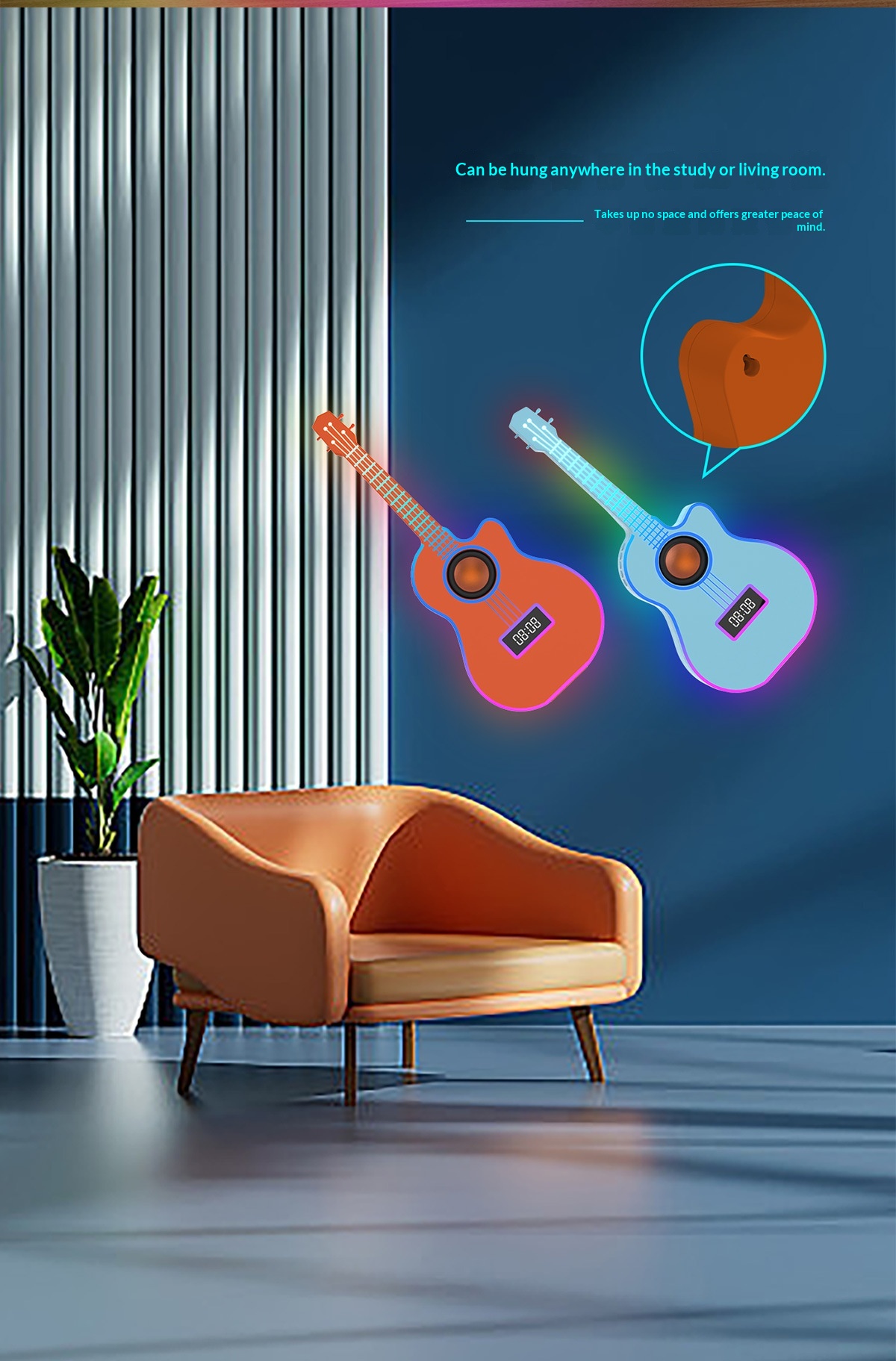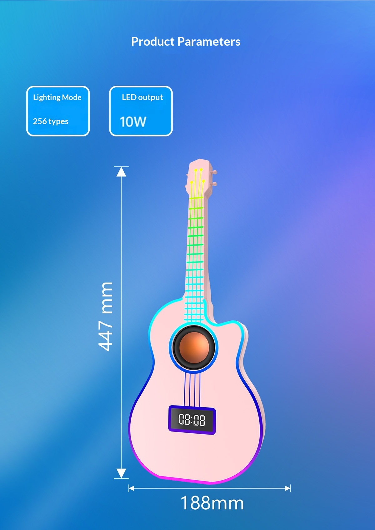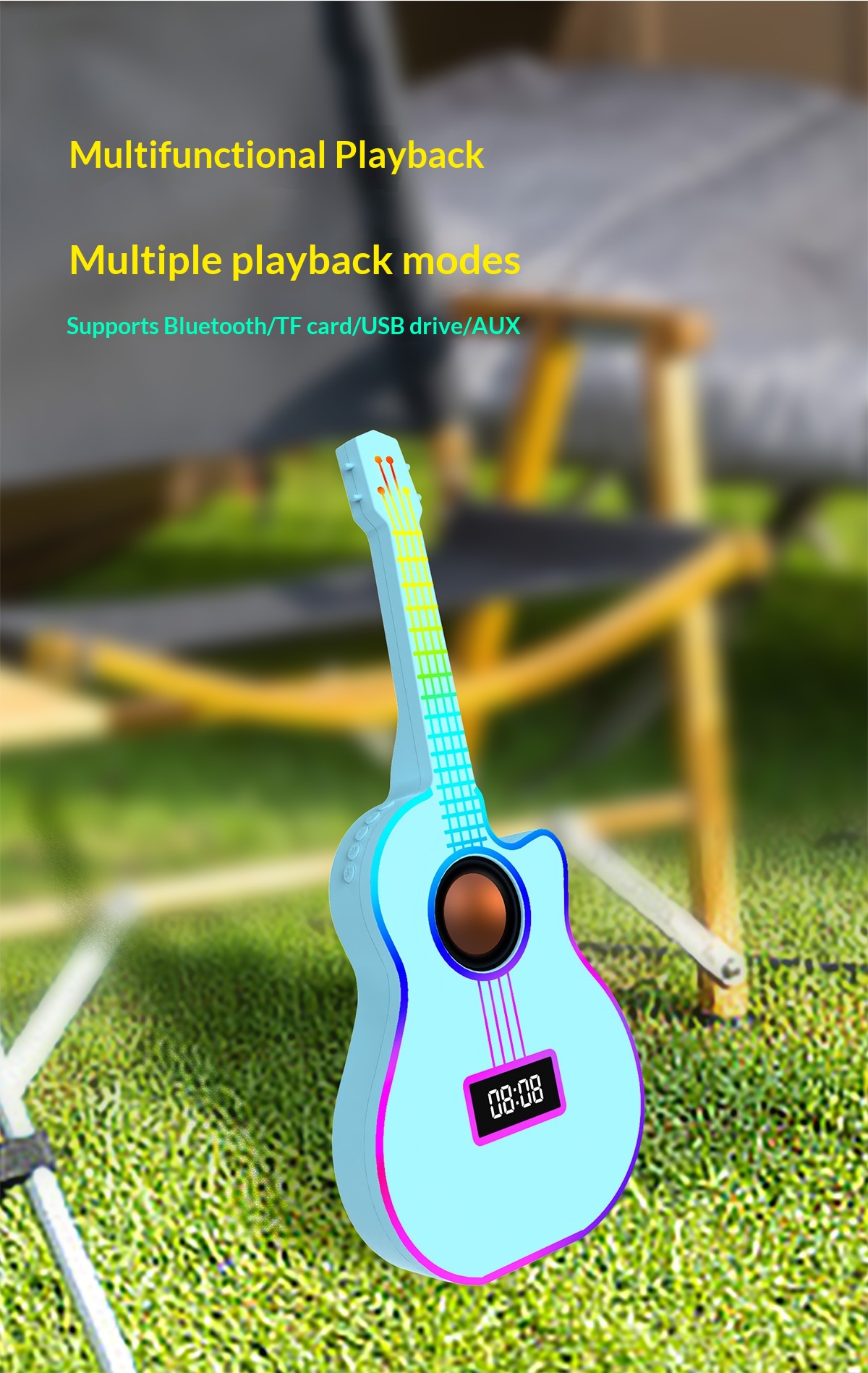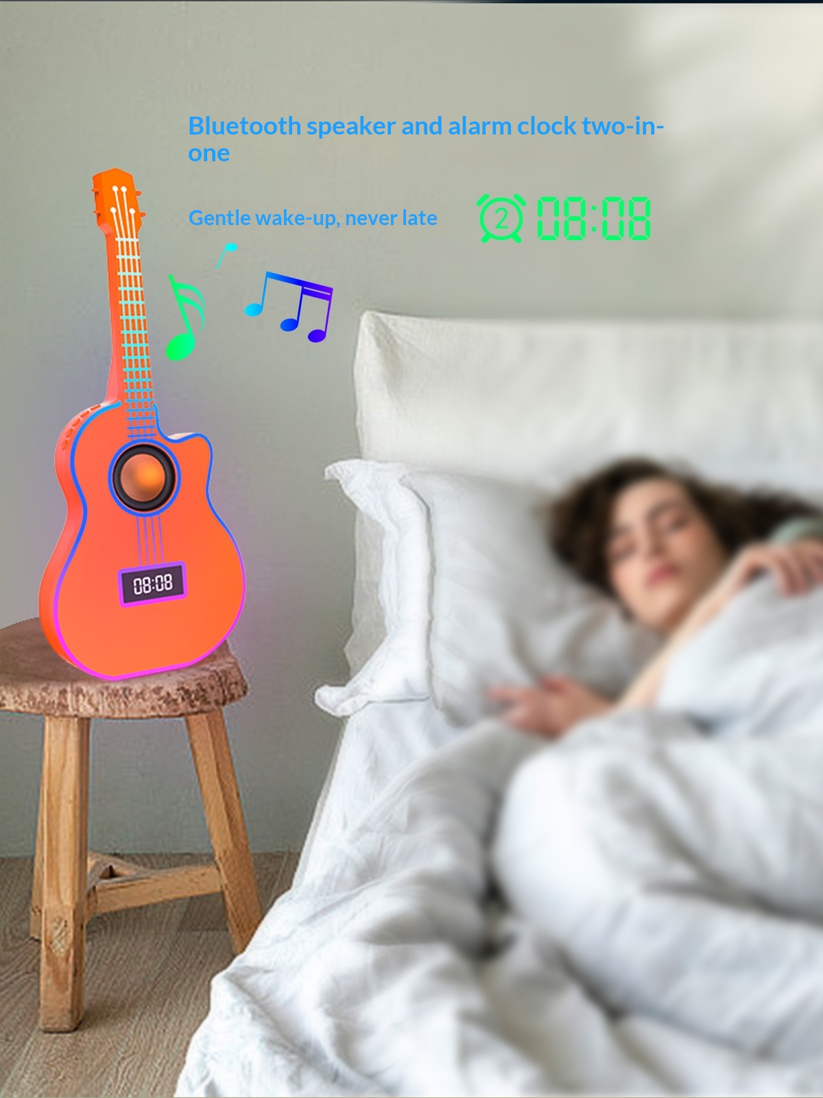 Bluetooth Guitar Speaker With An Alarm Clock And Vibrant Ambient Lighting