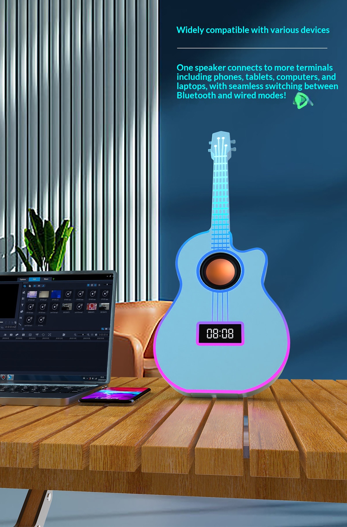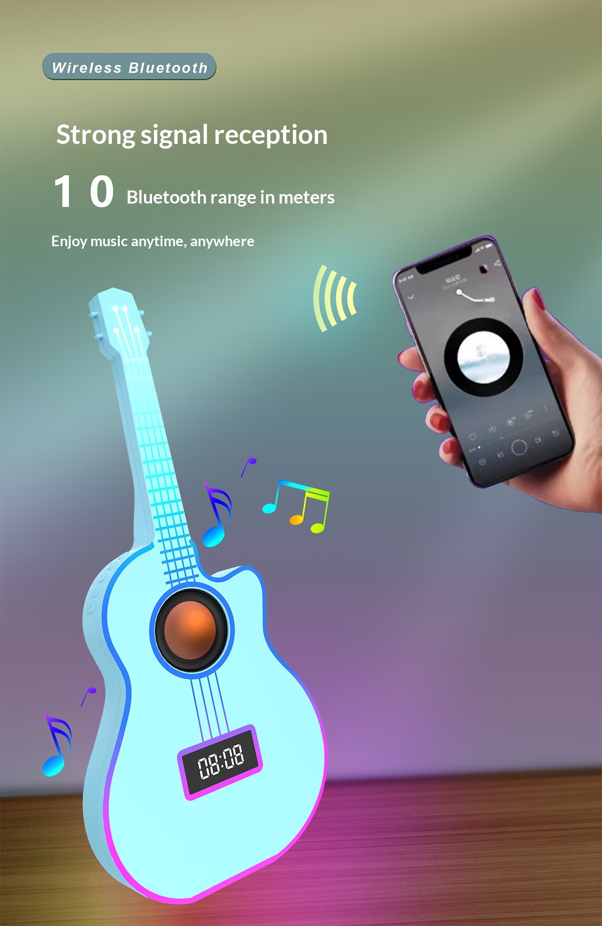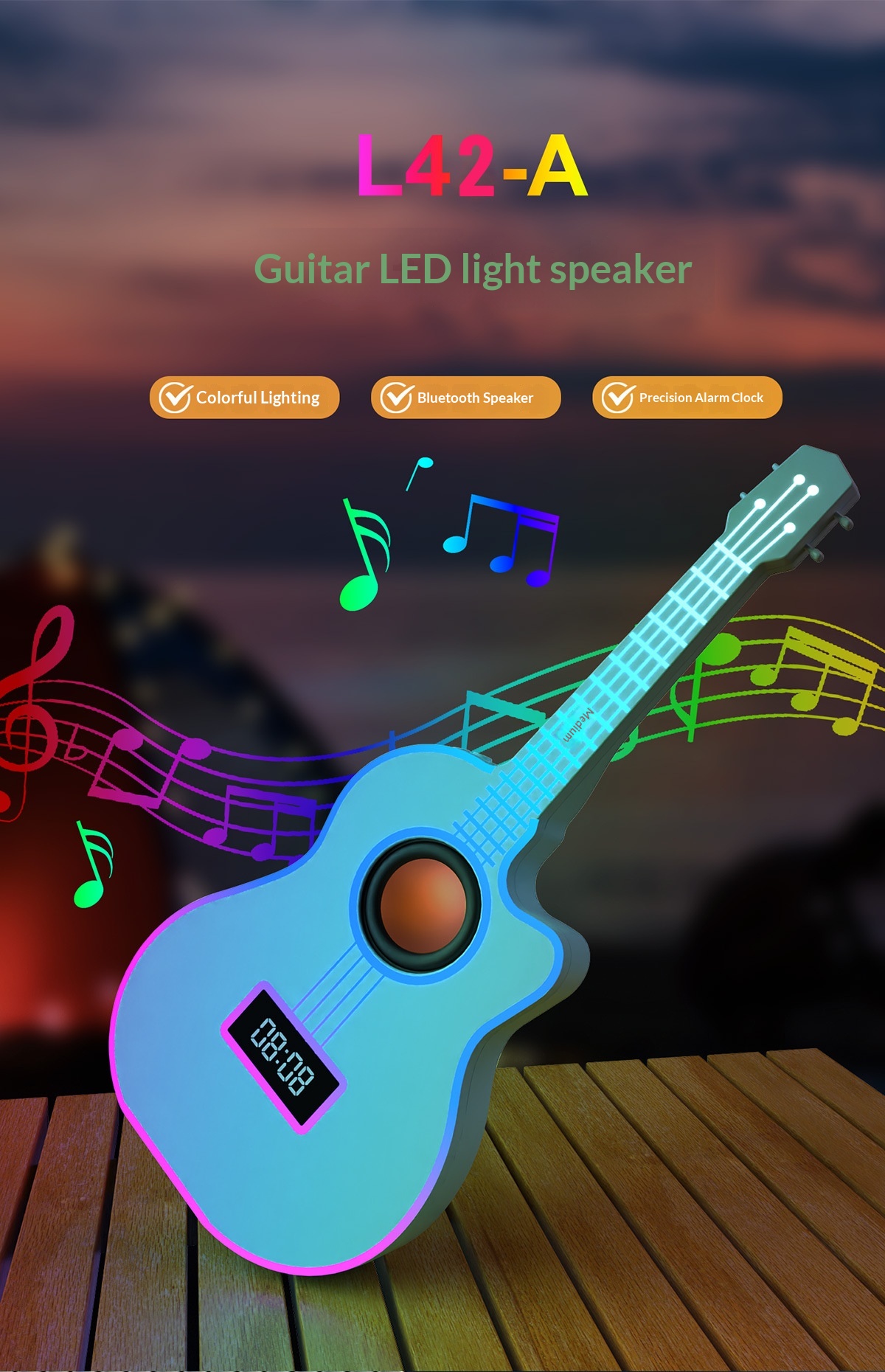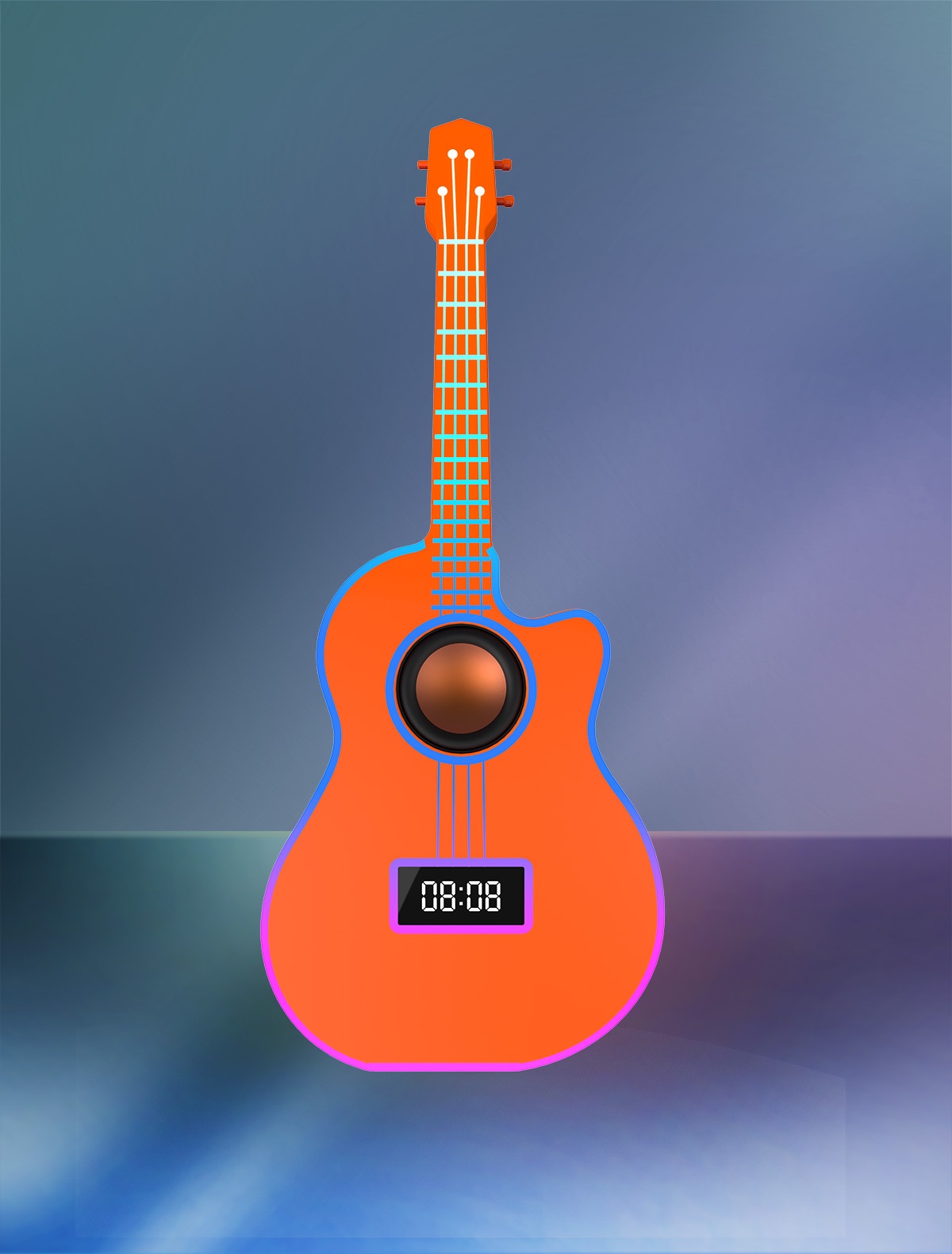 Bluetooth Guitar Speaker With An Alarm Clock And Vibrant Ambient Lighting