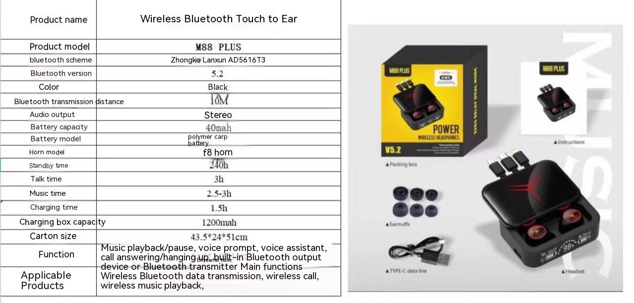 Color: M88 PLUS-(three charging plug Bluetooth 5.2 slide design) Black, M90 PRO (ultra-large power slide design)