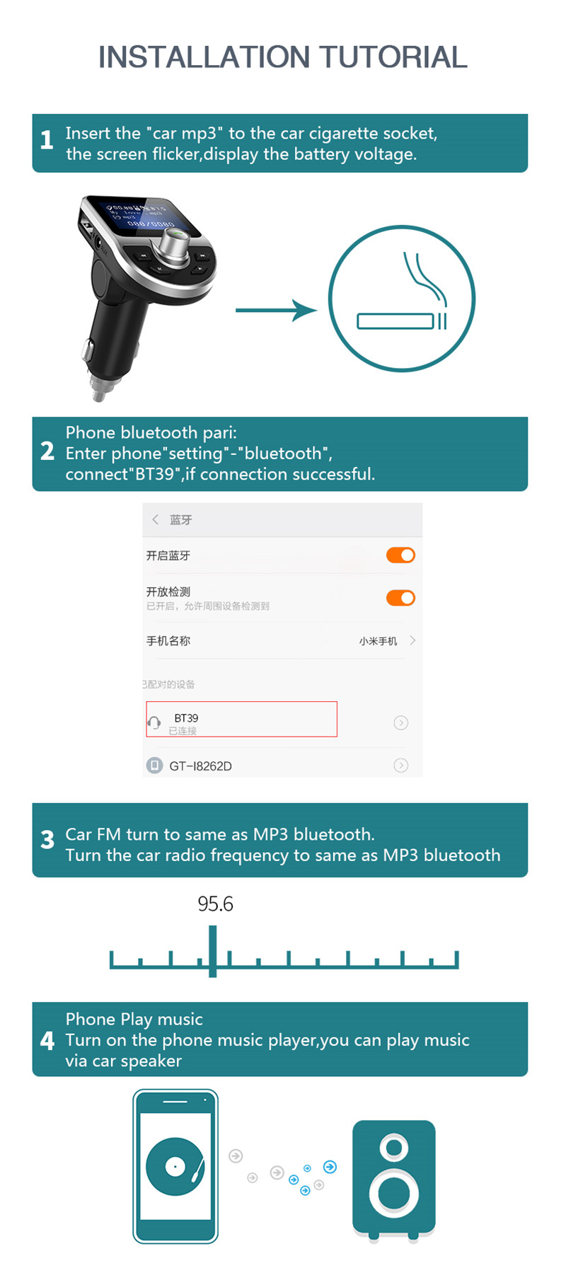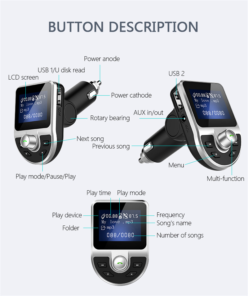 5. Support FM full frequency point transmission function, a total of 206 frequency points