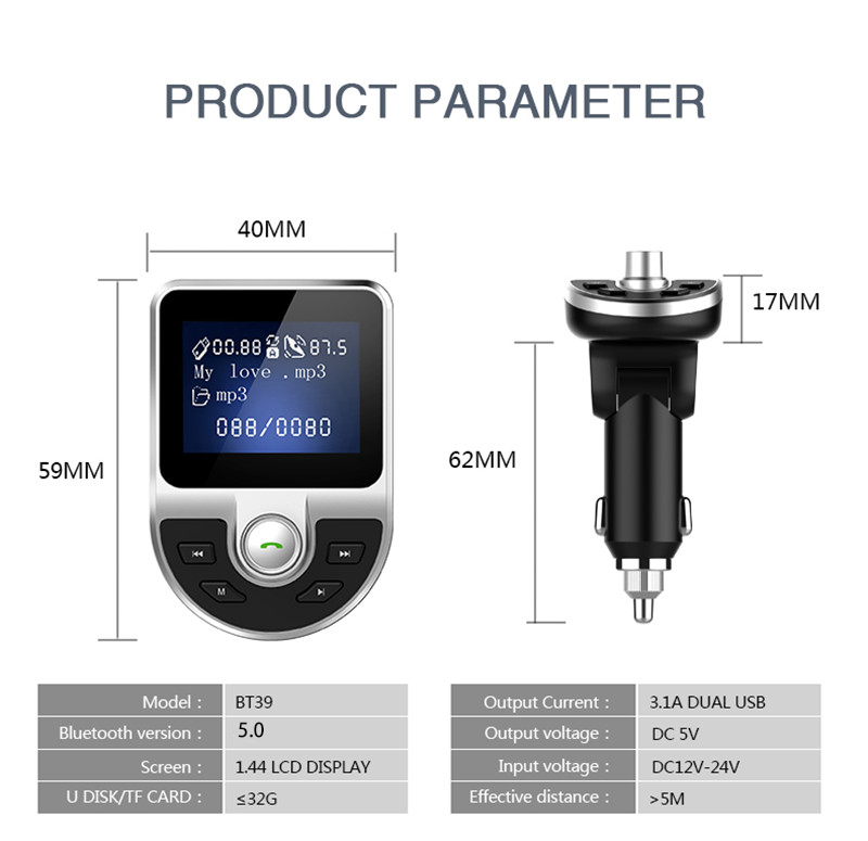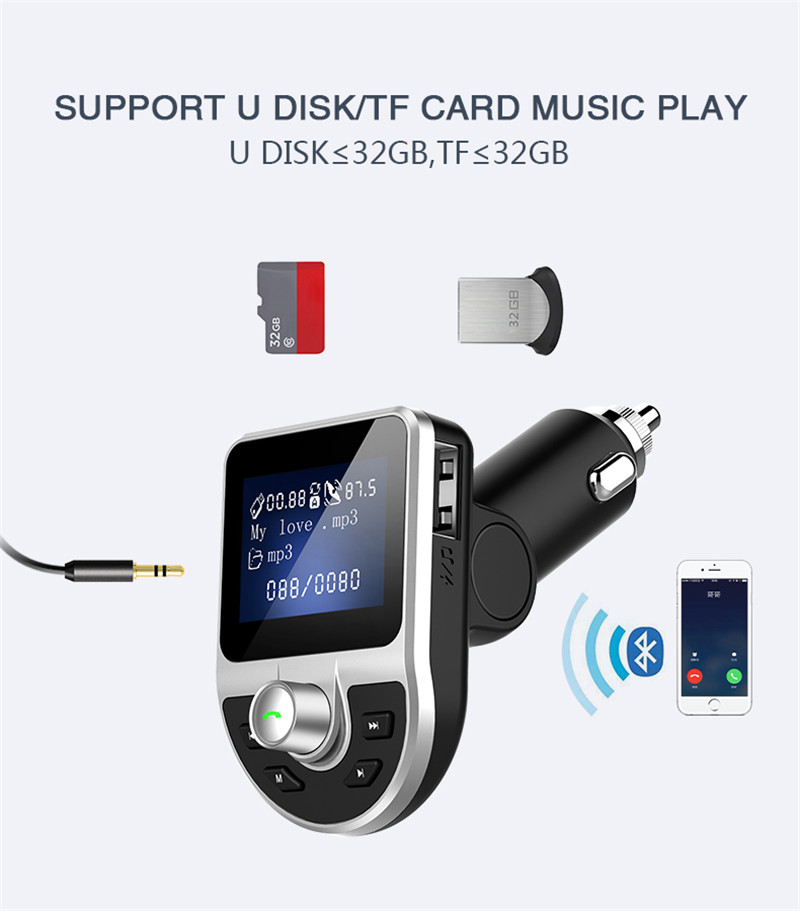 Bluetooth 5.0 FM Transmitter Car Mp3 Player U Disk Car Hands-Free USB Phone Charger Car Cigarette Lighter Car Accessories
