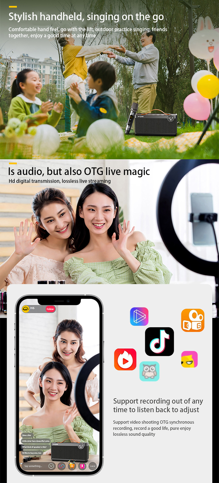 - Outdoor activities: Play music easily when having a picnic, camping or outdoor party with friends.